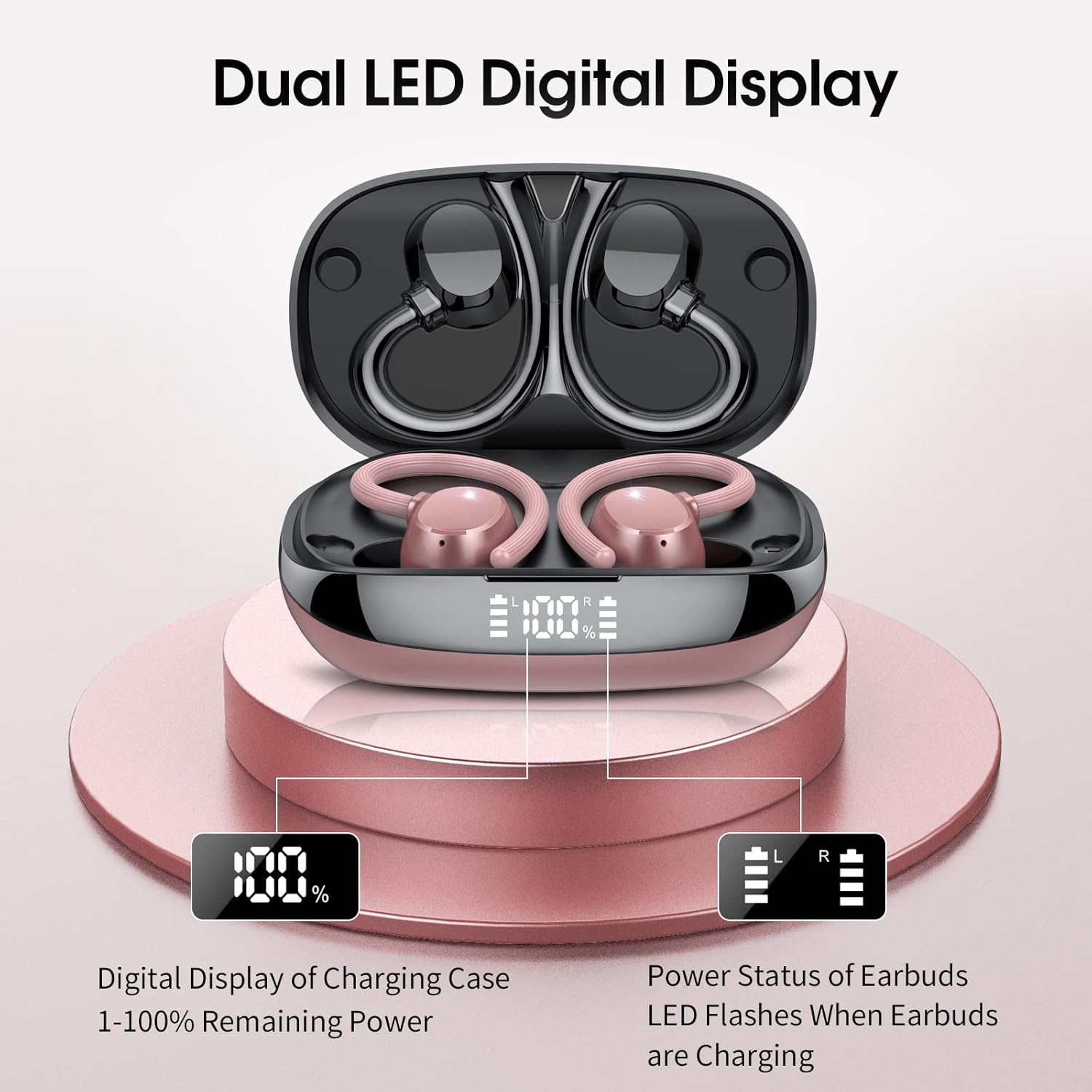 Wireless Earbuds, HiFi Stereo Sport Bluetooth 5.3 Headphones with Earhooks, 48H Deep Bass Headphones with LED Display, Noise Cancelling, IP7 Waterproof Earphones Built-in Mic for Running