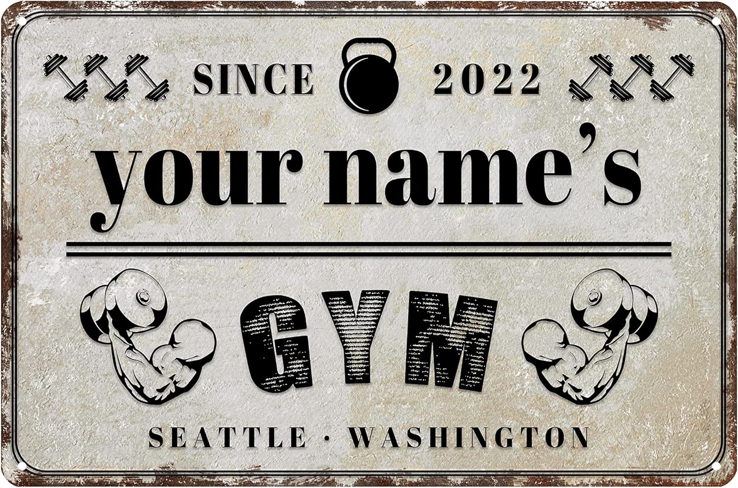 Custom Gym Sign Wall Art Decor Personalized Name Aluminum Metal Sign Retro Workout Room Fitness Center Tin Sign