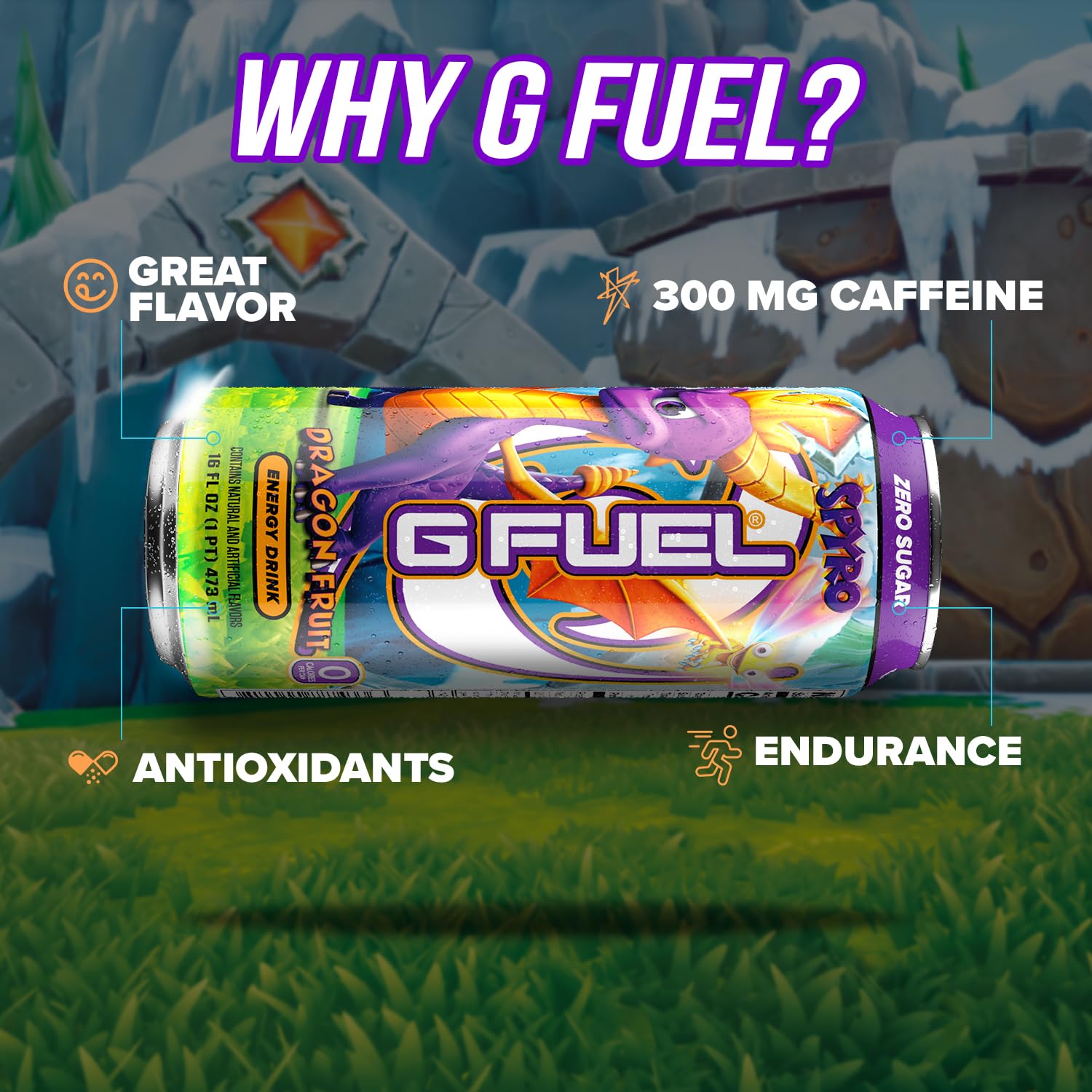 - INSPIRED BY SPYRO THE DRAGON: G Fuel teamed with Activision to create this Spyro the Dragon inspired energy drink. Shake up this delicious Dragon Fruit elixir and get the boost you need to help you on your next adventure!