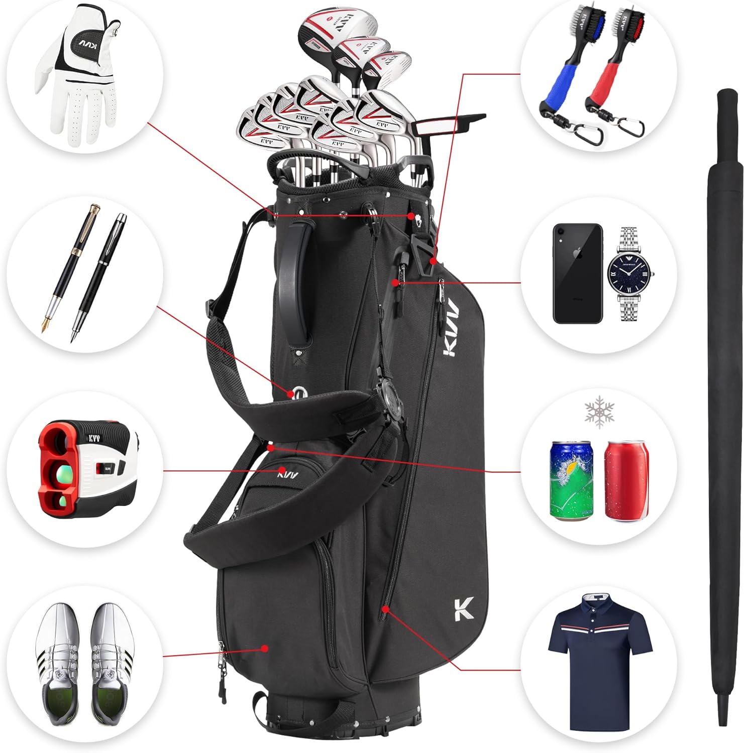KVV Lightweight Golf Stand Bag with 7 Way Full-Length Dividers, 5 Zippered Pockets, Automatically Adjustable Dual Straps,Elegant Design