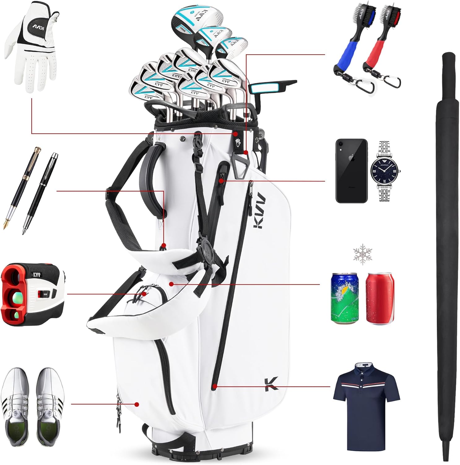 KVV Lightweight Golf Stand Bag with 7 Way Full-Length Dividers, 5 Zippered Pockets, Automatically Adjustable Dual Straps,Elegant Design