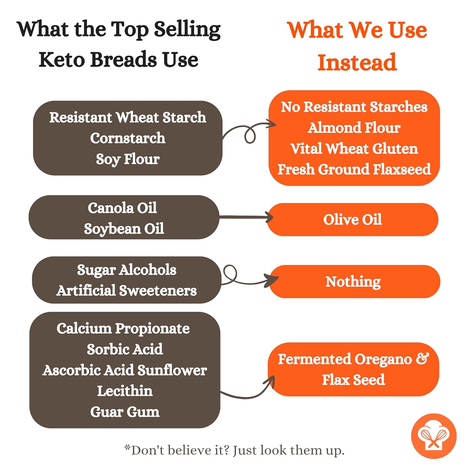 - GUILT FREE AND VERSATILE - You can eat me guilt free! With zero sugar, no cholesterol, no trans fat, nearly zero carbs, and the most nutritious ingredients, whatโs there not to like? Our bread can be called many things: wheat bread, white bread, sandwich bread, brioche bread, rye bread, oat bread, and best of all keto bread zero carb!