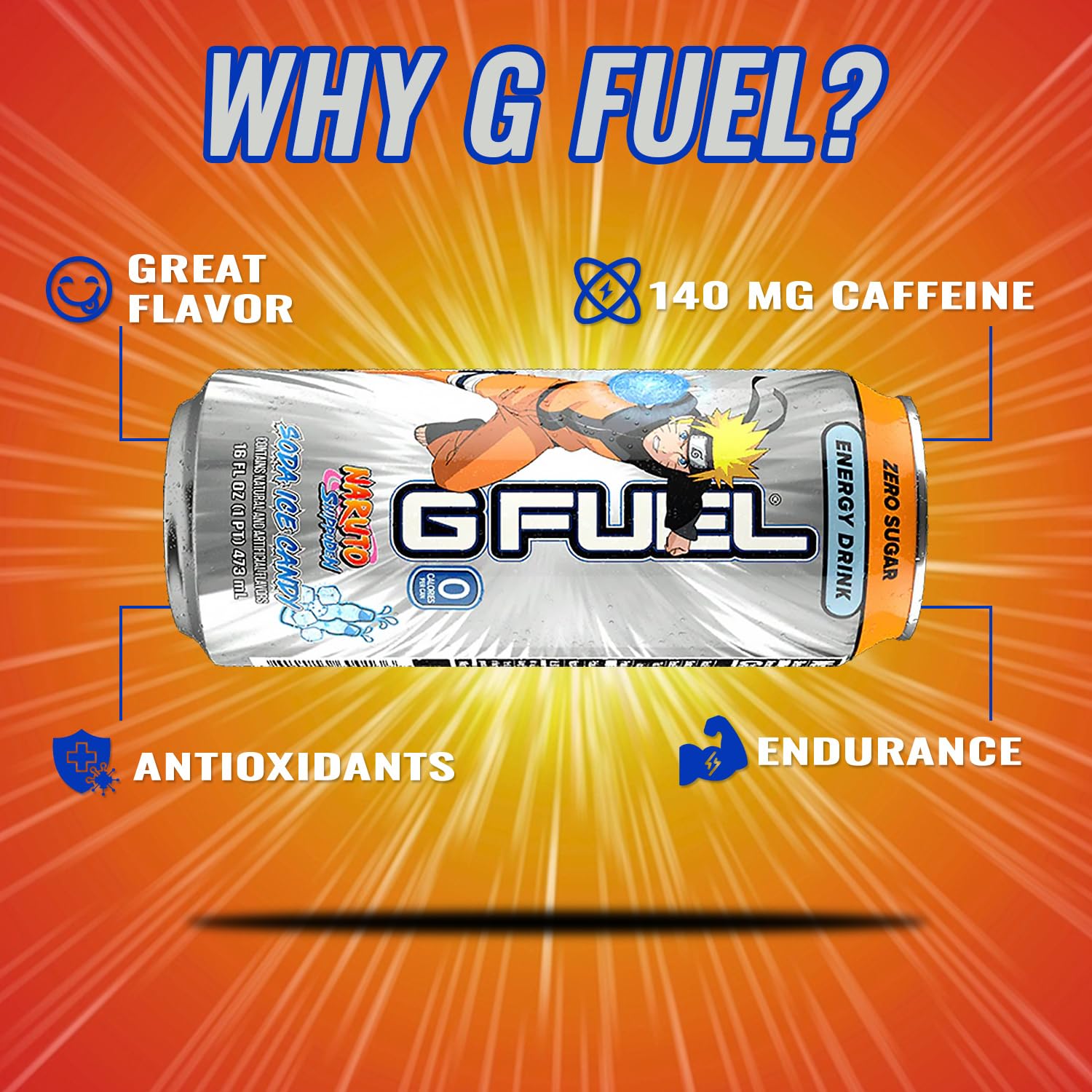 G Fuel Energy Drink, Lemon Lime Slushie, Sugar Free Beverage with 140mg Caffeine, Daily Energy Boost with Focus Amino, Vitamin + Antioxidants, 16 oz Cans (Naruto Shippuden, 12-Pack)