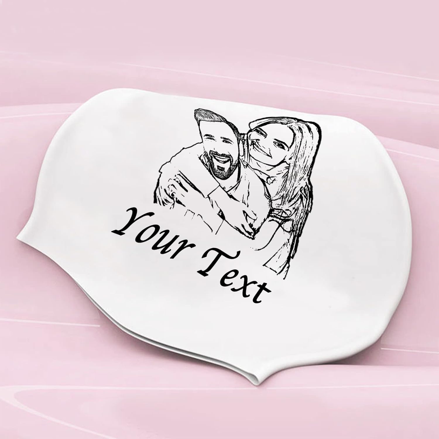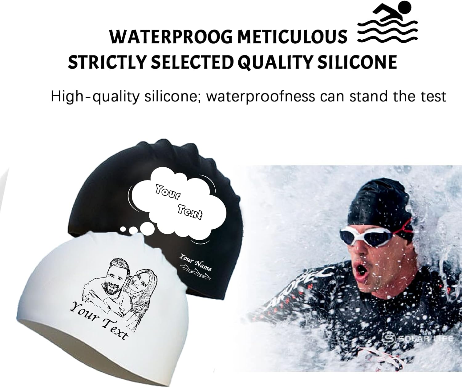 Custom Swim Cap with Photo Personalized Silicone Swim Cap for Men and Women Swimming Customized Swimmers Cap for Short and Medium Length Hair