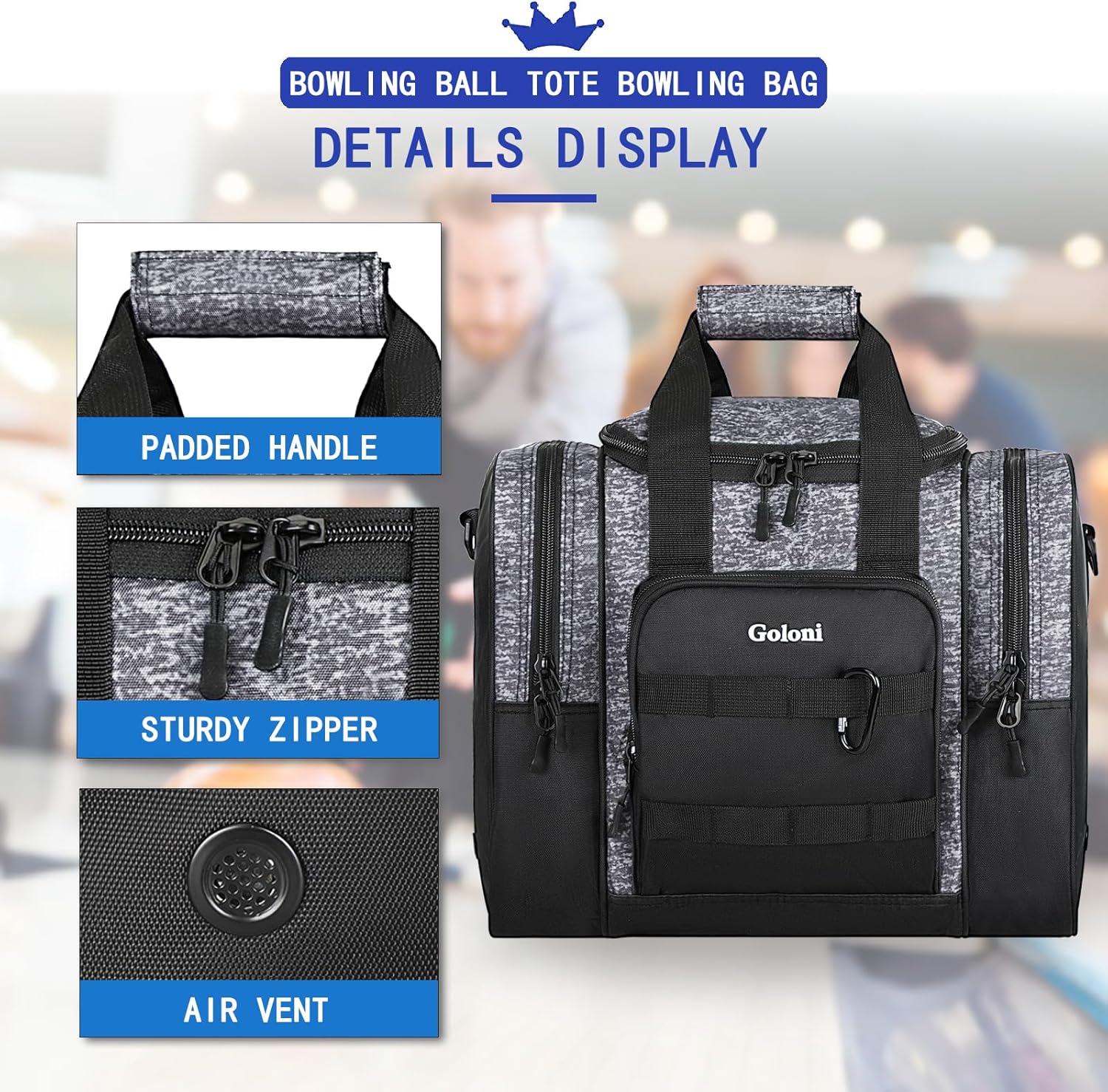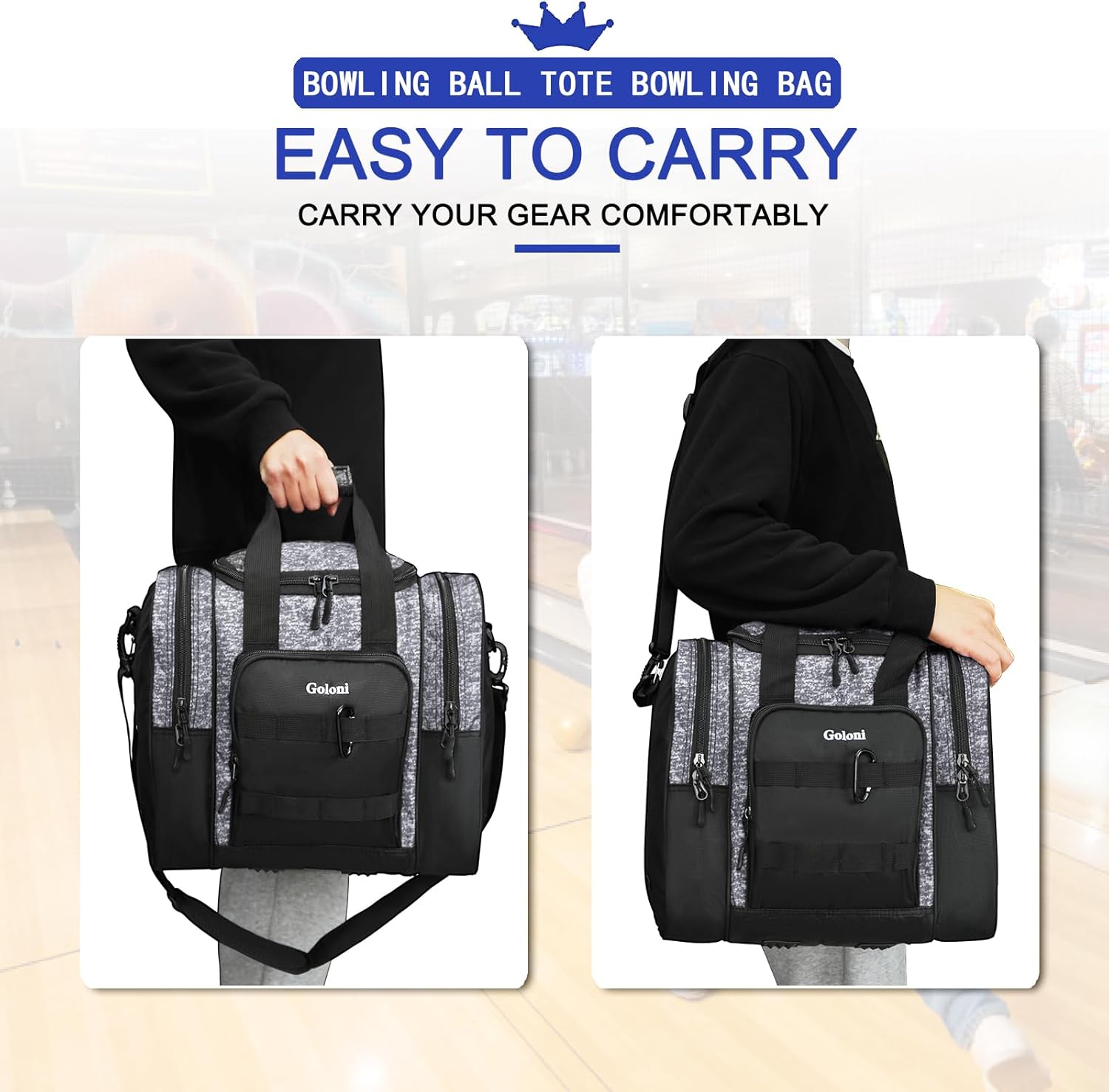 Goloni Bowling Ball Bag for Singer Ball with Padded Ball Holder, 2 Pockets fit Bowling Shoes Up to Mens Size 14 and Accessories