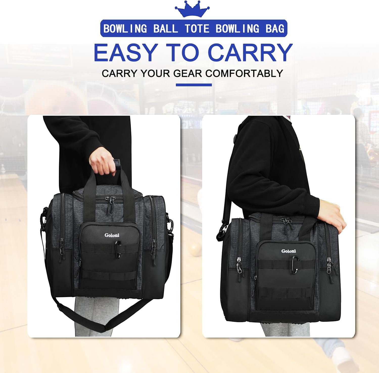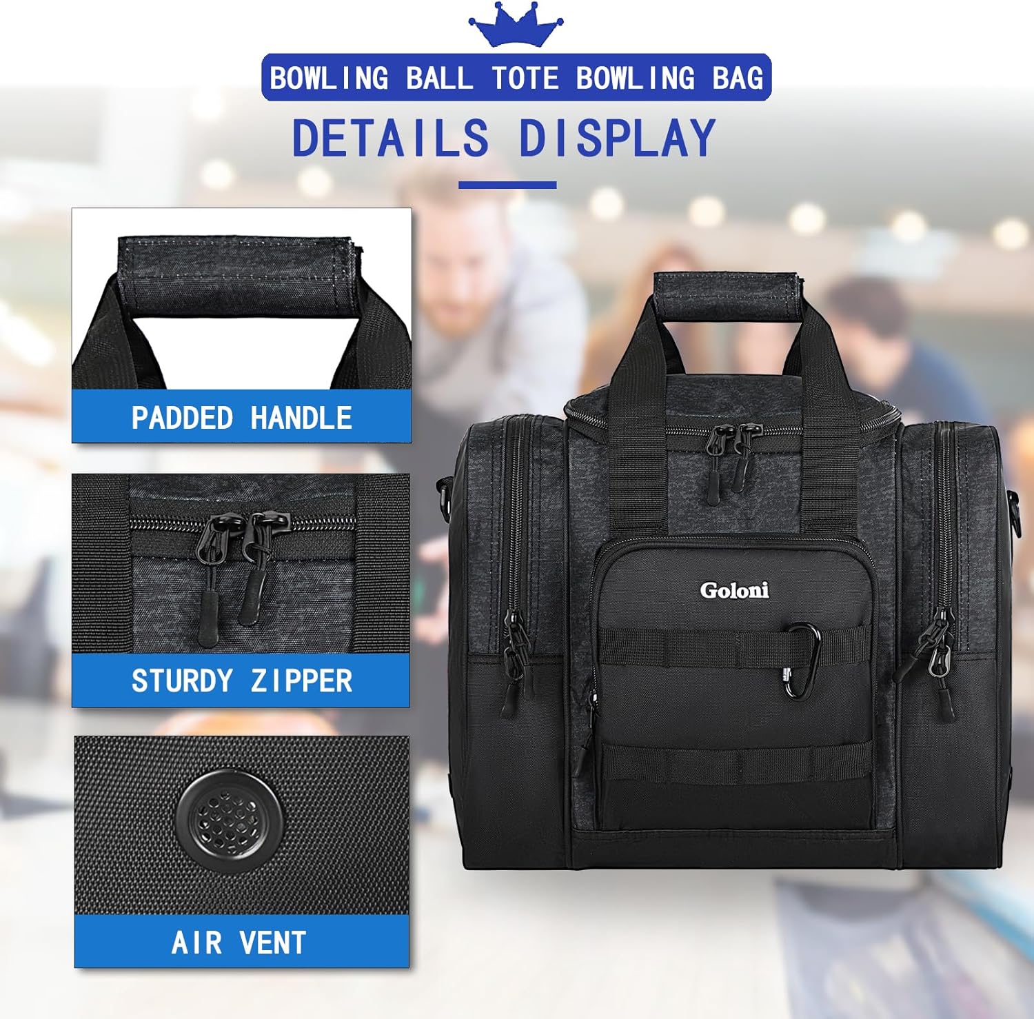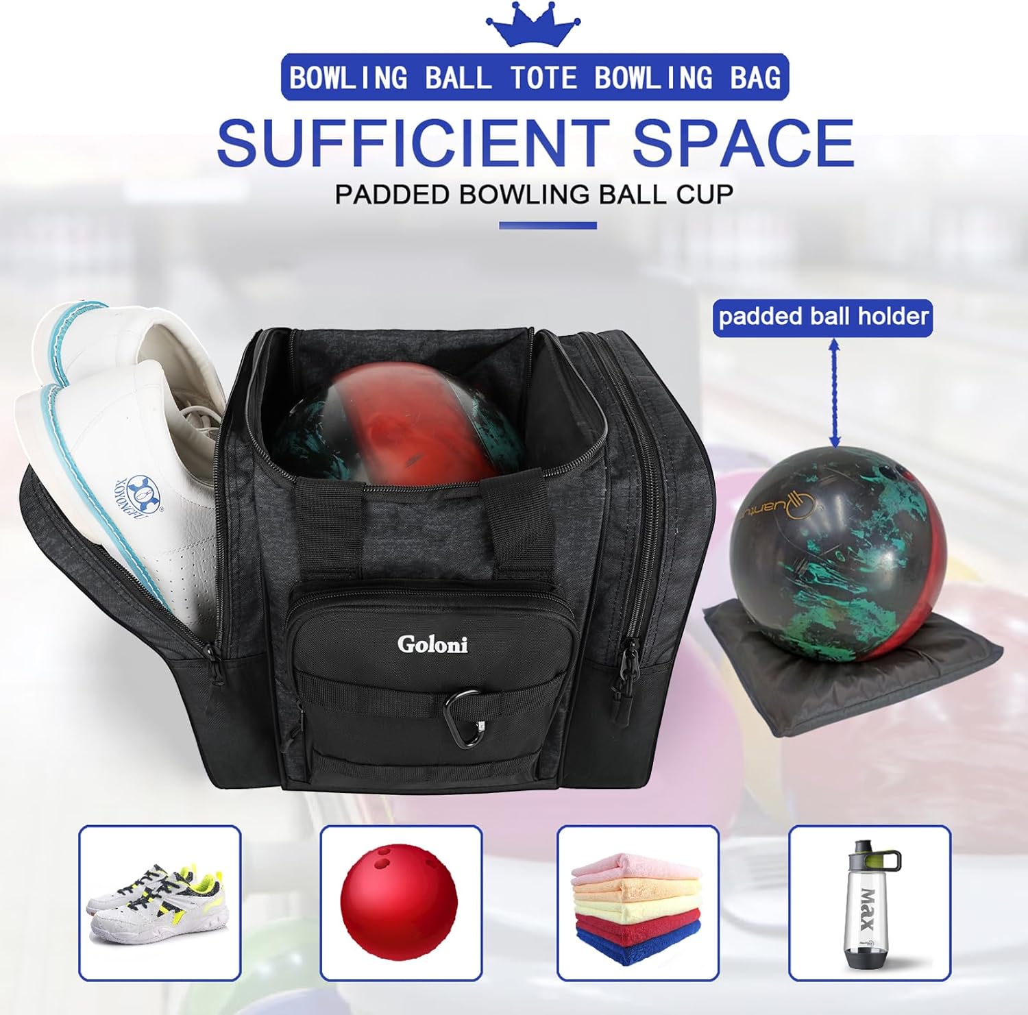 Goloni Bowling Ball Bag for Singer Ball with Padded Ball Holder, 2 Pockets fit Bowling Shoes Up to Mens Size 14 and Accessories