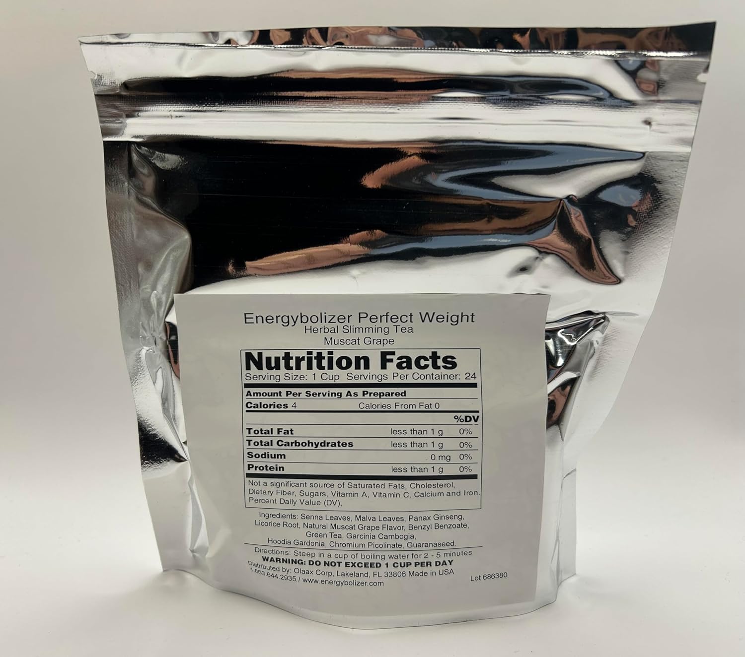 Energybolizer Perfect Weight Herbal Tea (24 Bags)| Natural Energy Booster for Women and Men | Increase Energy, Improve Digestion (Muscat Grape)