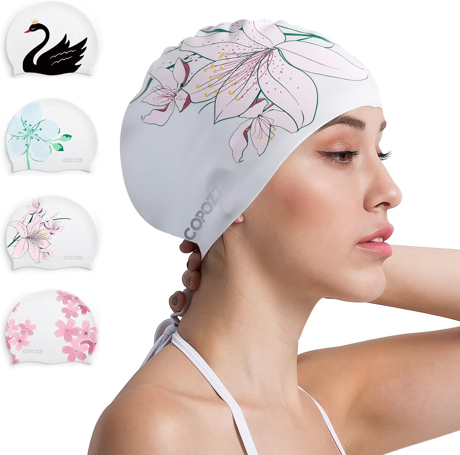 COPOZZ Stylish Silicone Swim Cap for Women – Comfortable, Durable, and Hair-Protecting Design