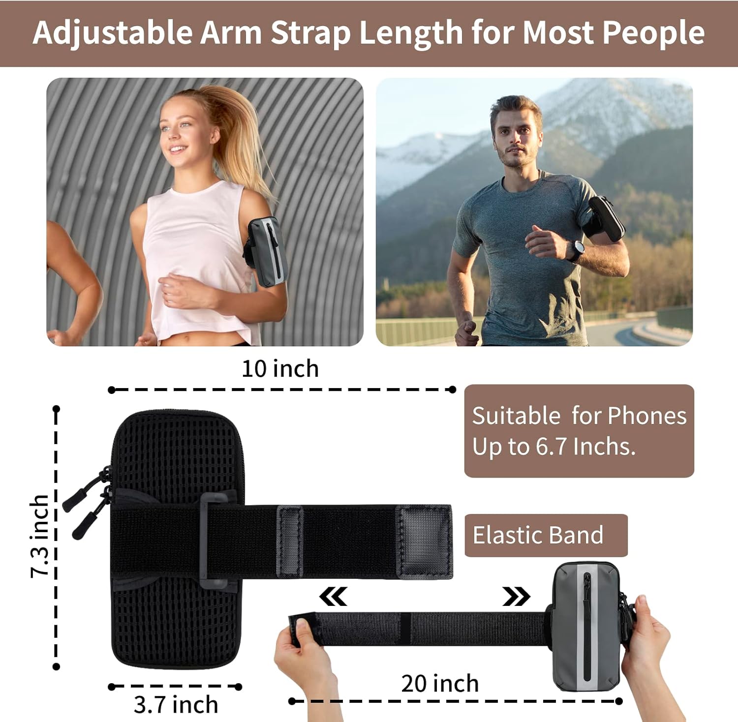 - [Universal Size]: The arm band is 7.3*3.5 inches, which can fit a cell phone up-to 6.7 inches. The phone holder armband is compatible with most cell phone,fits iPhone 14/13/12/11/Pro/Pro Max/Plus/Mini/SE/Xs Max/Xs/XR/X/8/7/6/Samsung Galaxy up to 6.7 inchs, etc.