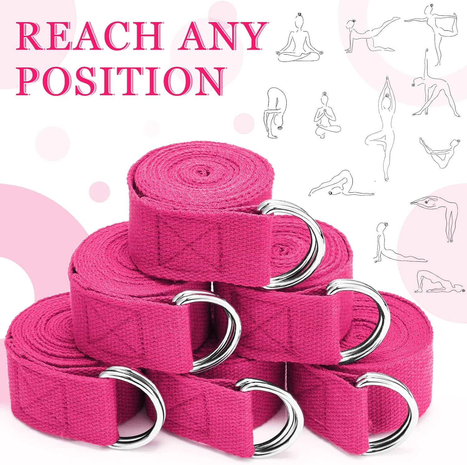 Leyndo 24 Pieces Yoga Strap Stretching Pilates Exercise Adjustable Straps 6 ft Non Elastic Yoga Belt with Adjustable D Ring Buckle for Pilates Gym Workouts Fitness