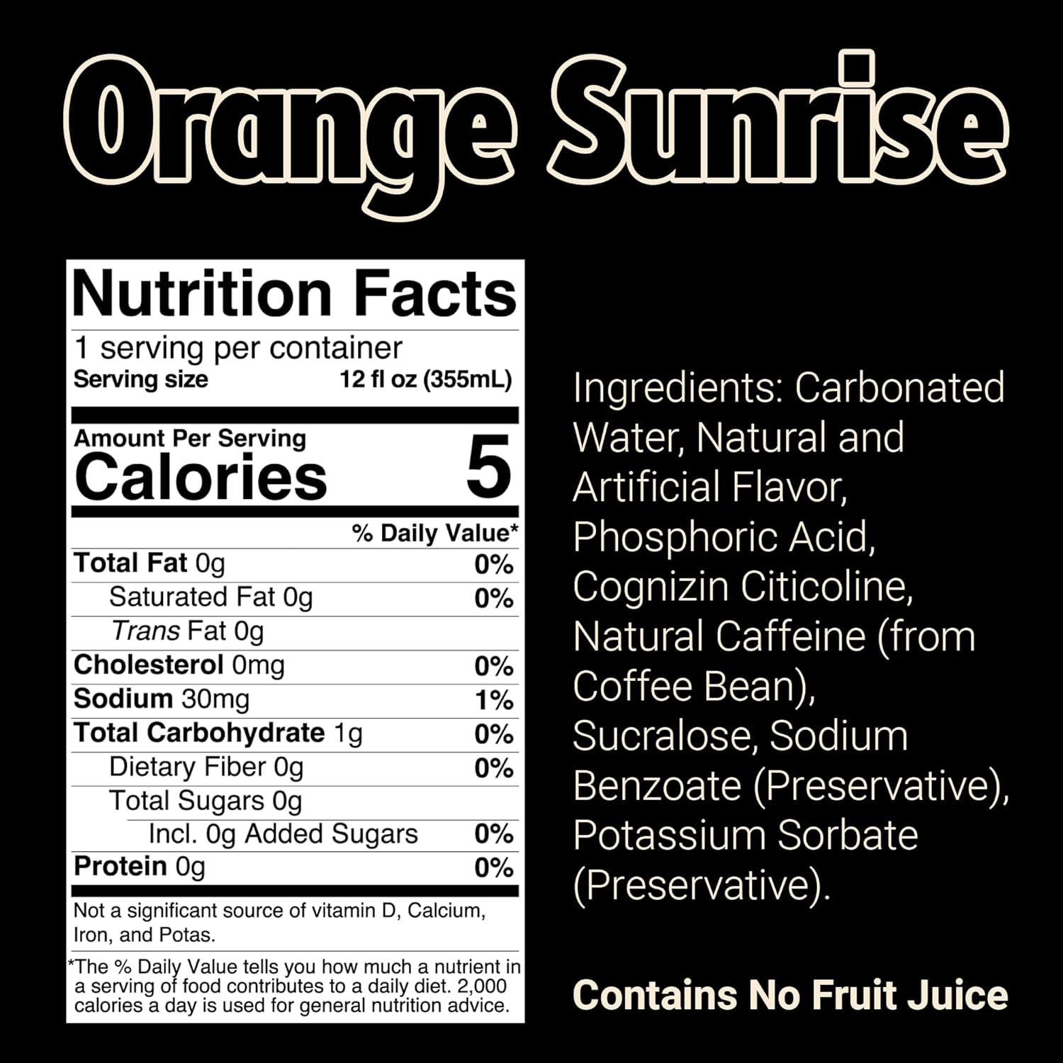 BUM Sugar-Free Energy Drink, Orange Sunrise - Lightly Carbonated & No Artificial Colors, Natural Caffeine & Citicoline for Energy & Focus, Brain Boost & Workout Sports Beverage - 12 oz, Pack of 12
