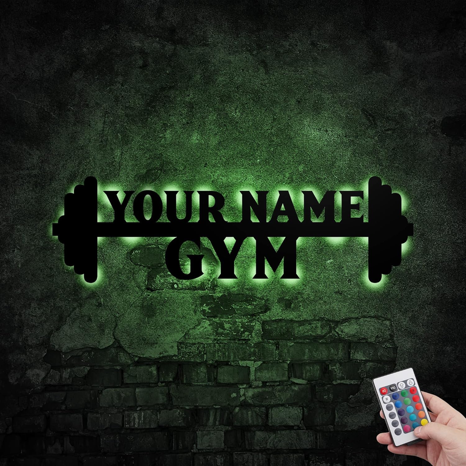 Personalized Home Gym LED Tin Metal Sign Multiple Sizes, Gym Sign Wall Decor, Exercise Workout Room Decor Fitness Center, Motivational Inspirational Hanging Wall Art Wall Plaque (02 w/lights)