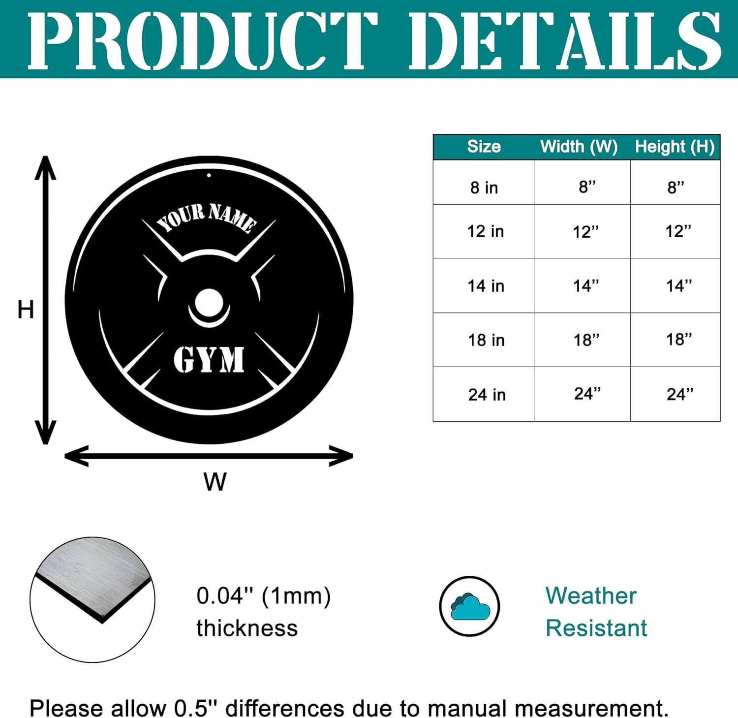 Personalized Home Gym LED Tin Metal Sign Multiple Sizes, Gym Sign Wall Decor, Exercise Workout Room Decor Fitness Center, Motivational Inspirational Hanging Wall Art Wall Plaque (05 w/o lights)