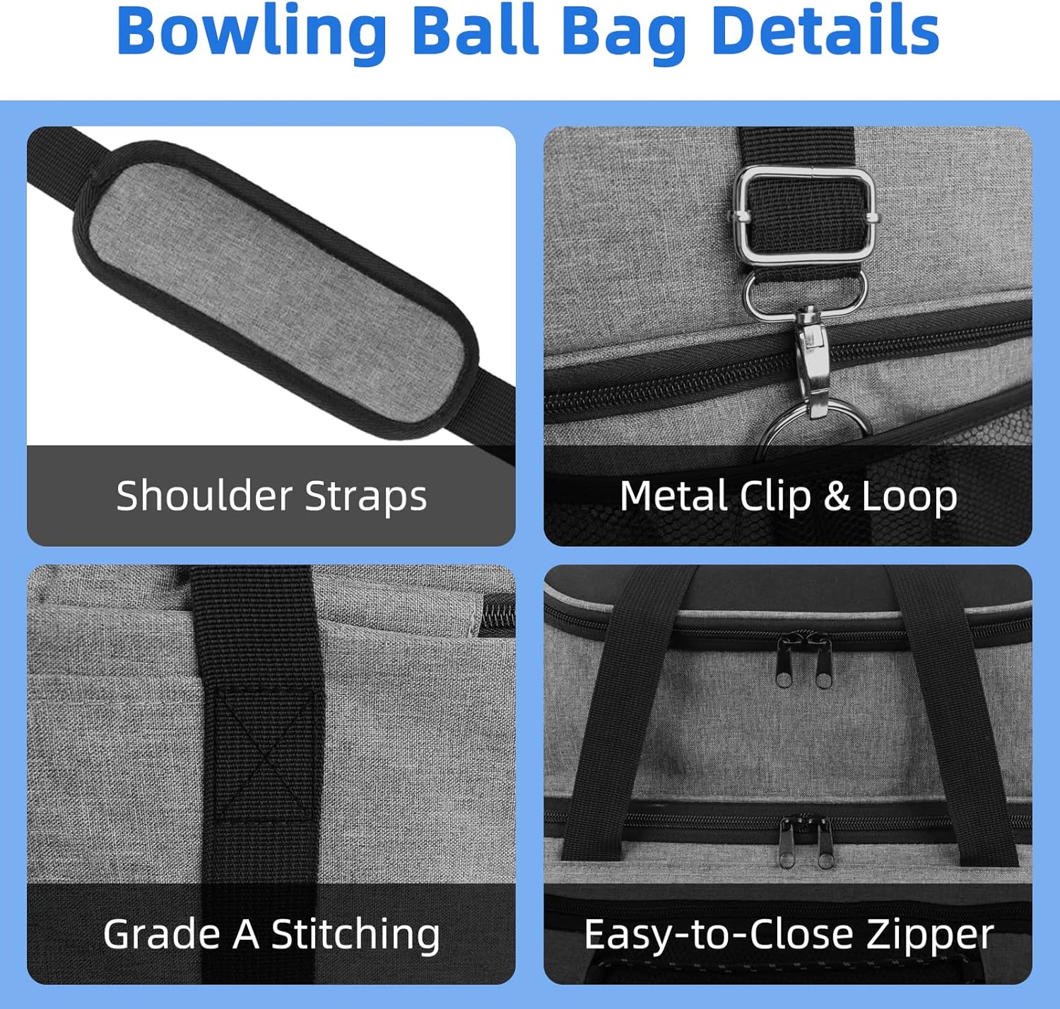 - PORTABLE: Bowling ball bag attached with padded sturdy handles and a detachable shoulder strap so you can carry it by hand or crossbody. A vertical strap on back for slipping over a trolley grip handle. Perfect for daily use, travel or tournament players.