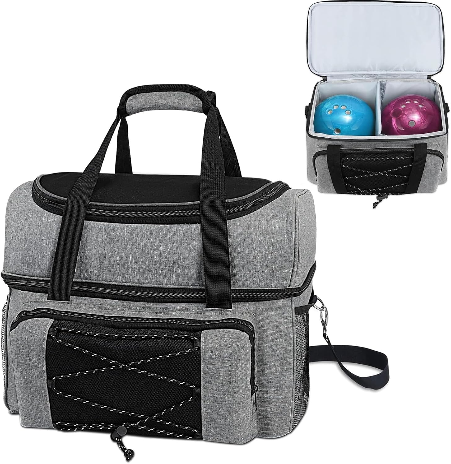 Bowling Ball Bag 2 Ball with Padded Holder Portable Double Bowling Totes with Adjustable Shoulder Strap Large Capacity Bowling Gear Organizer