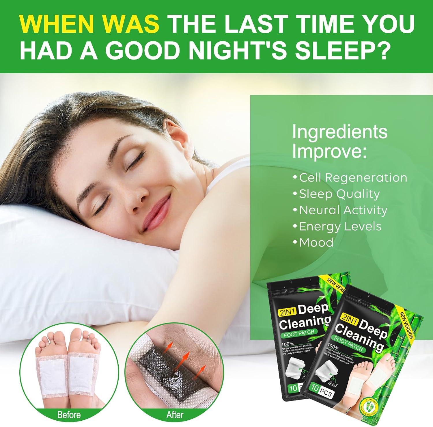 - 👣【Easy to Use】: Was hand dry your feet before applying the footpad. Take one adhesive sheet and slowly peel off the paper. Place each at the bottom middle of your foot/sole. Wear the socks to sleep. Finally, remove and discard after 6-8 hours.