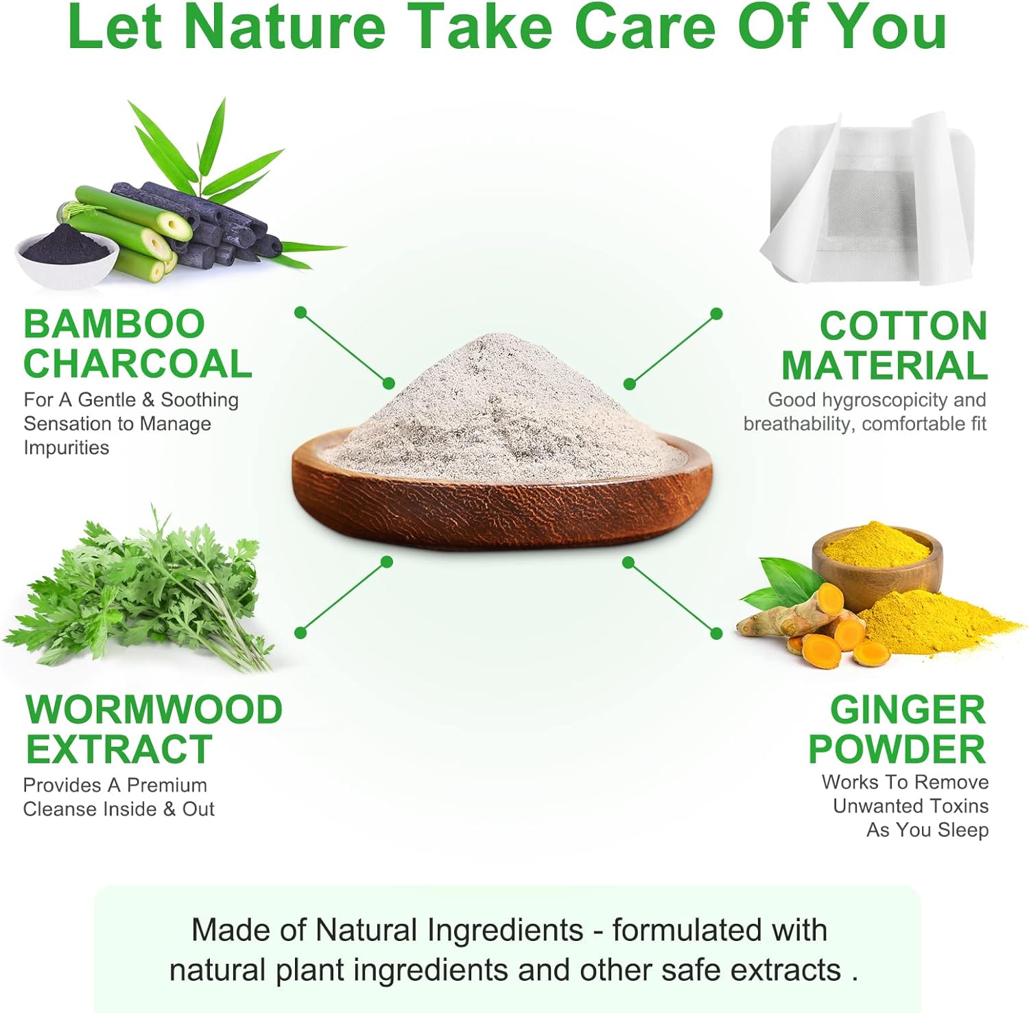 - 👣【Natural Ingredients】: The main ingredients of Ginger Foot Pads - ginger powder, bamboo vinegar powder.