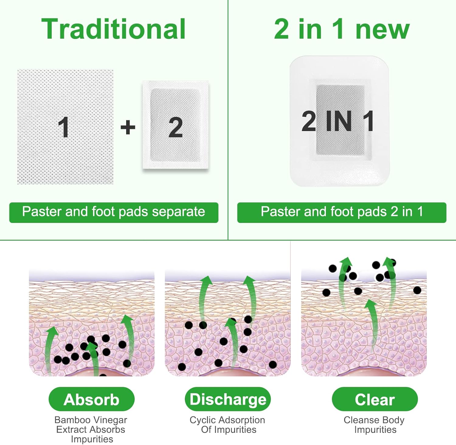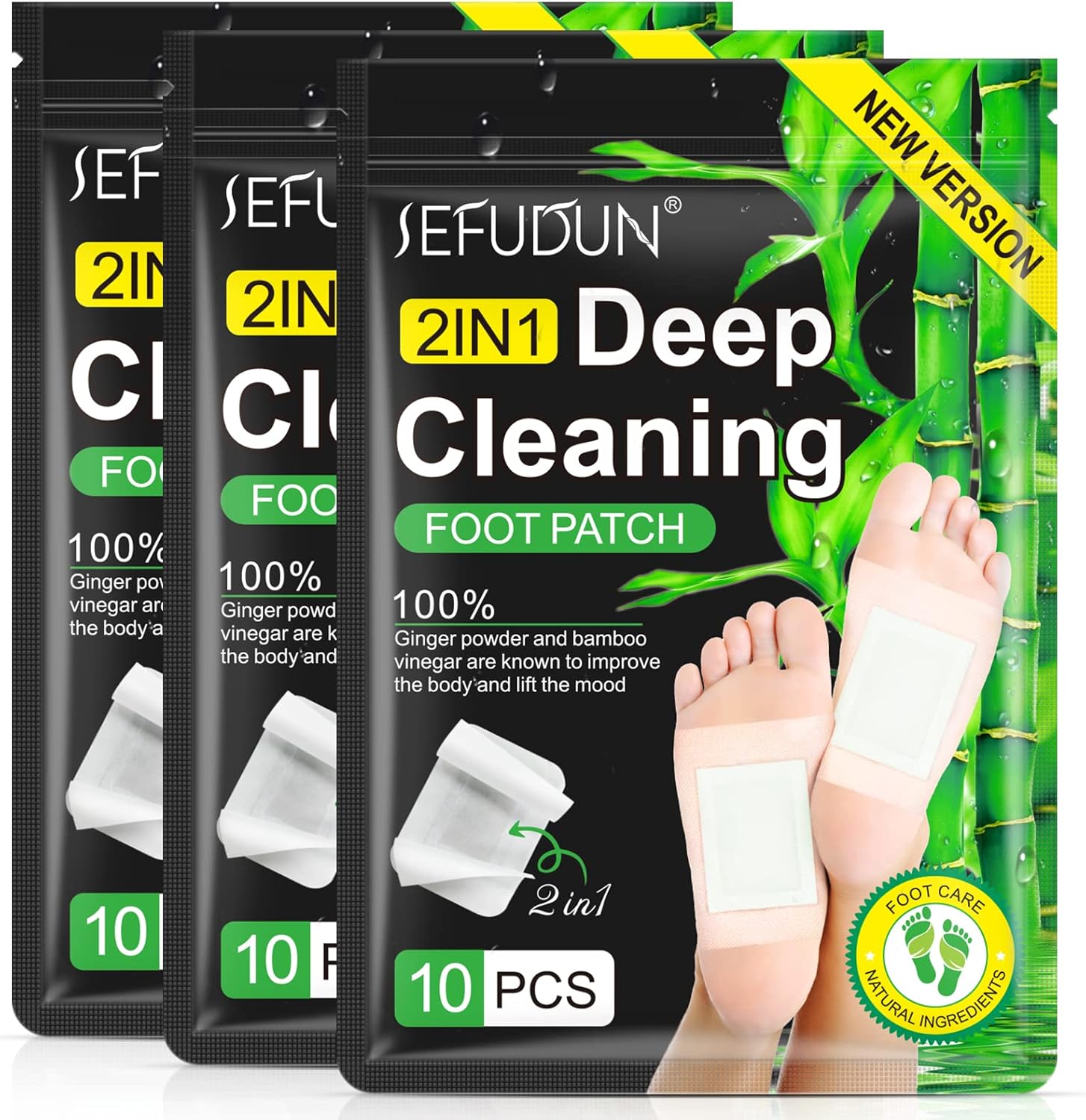 2 in 1 30PCS Foot Pads, Natural Bamboo Vinegar Ginger Powder Foot Pads