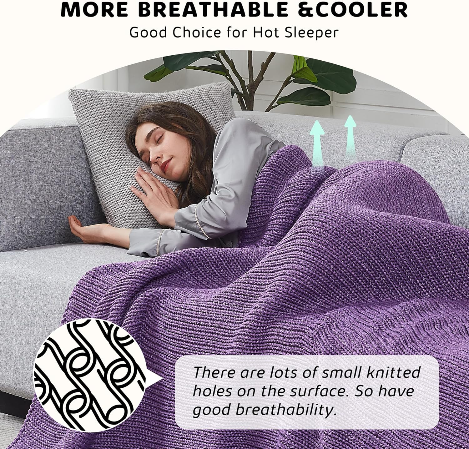 - MORE BREATHABLE: Knitted weighted blankets are more breathable because there are many small knitted holes on the surface of the blanket through which air can circulate directly. You can enjoy the same weighted feeling while staying dry and comfortable