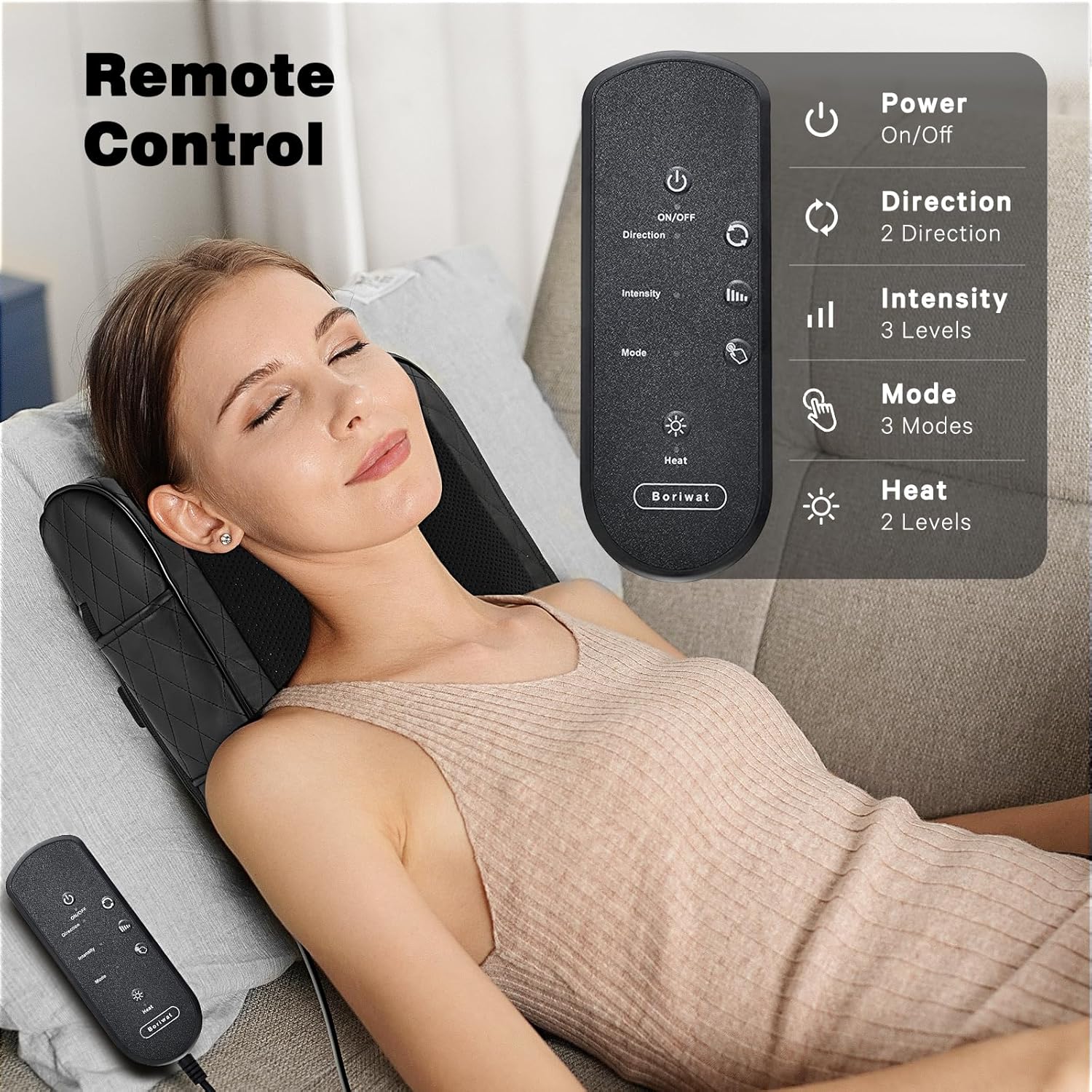 - Soothing heat: Boriwat back massage pillow features 2 heating intensities that can be adjusted to your desired level of warmth, helps improve blood circulation, promote muscle relaxation, and soothe soreness. Overheat protection function also ensures your safety during use.