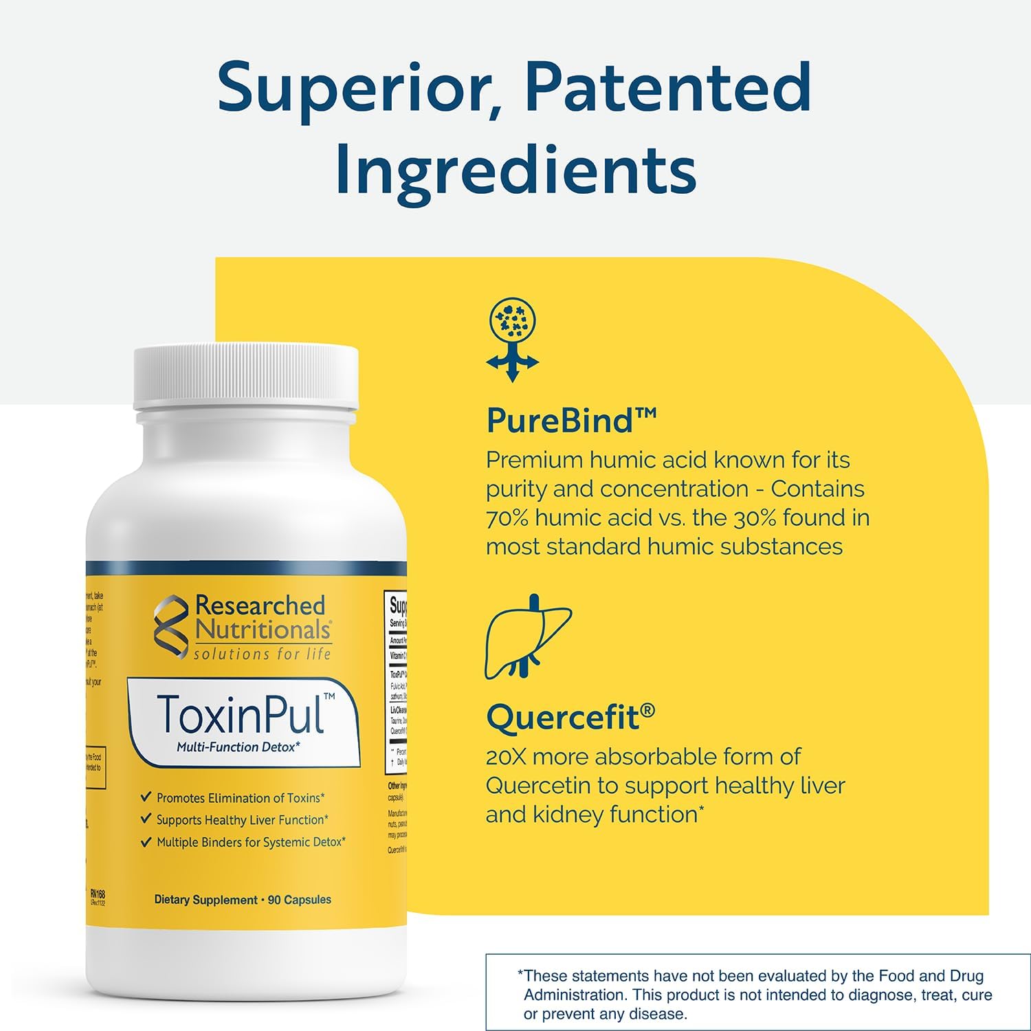 - More Powerful Ingredients - Quercefit is a unique form of quercetin that is 20x more absorbable than standard quercetin and offers liver and kidney support. PureBind is a superior, premium humic acid known for its purity and concentration, included for full body cleanse detox support. (Contains 70% humic acid vs. the 30% found in most standard humic substances).