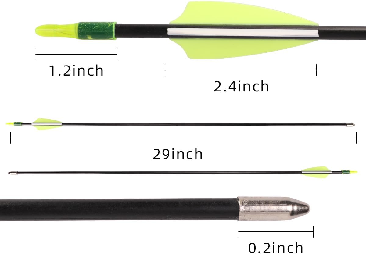 - 【Durability】:The arrow shaft is made of durable fiberglass and the tip is stainless steel, which will extend the durability of the archery arrows.