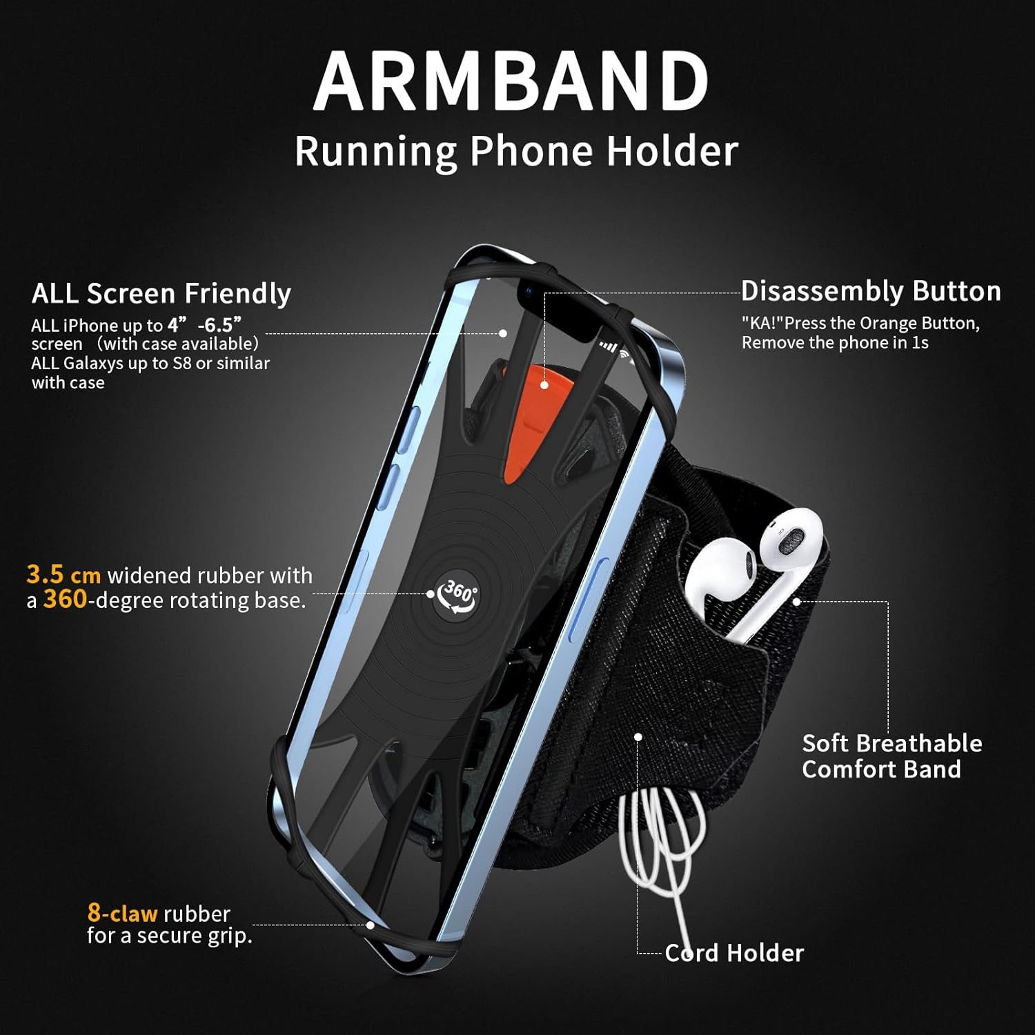 - 【Complete screen access for convenience】Designed to provide full access to screens, this running armband phone holder fits phones ranging from 4" to 6.5". It allows for complete control of your device without having to remove it from the holder. You can switch playlists, check emails, answer calls, and stop timers without any inconvenience.