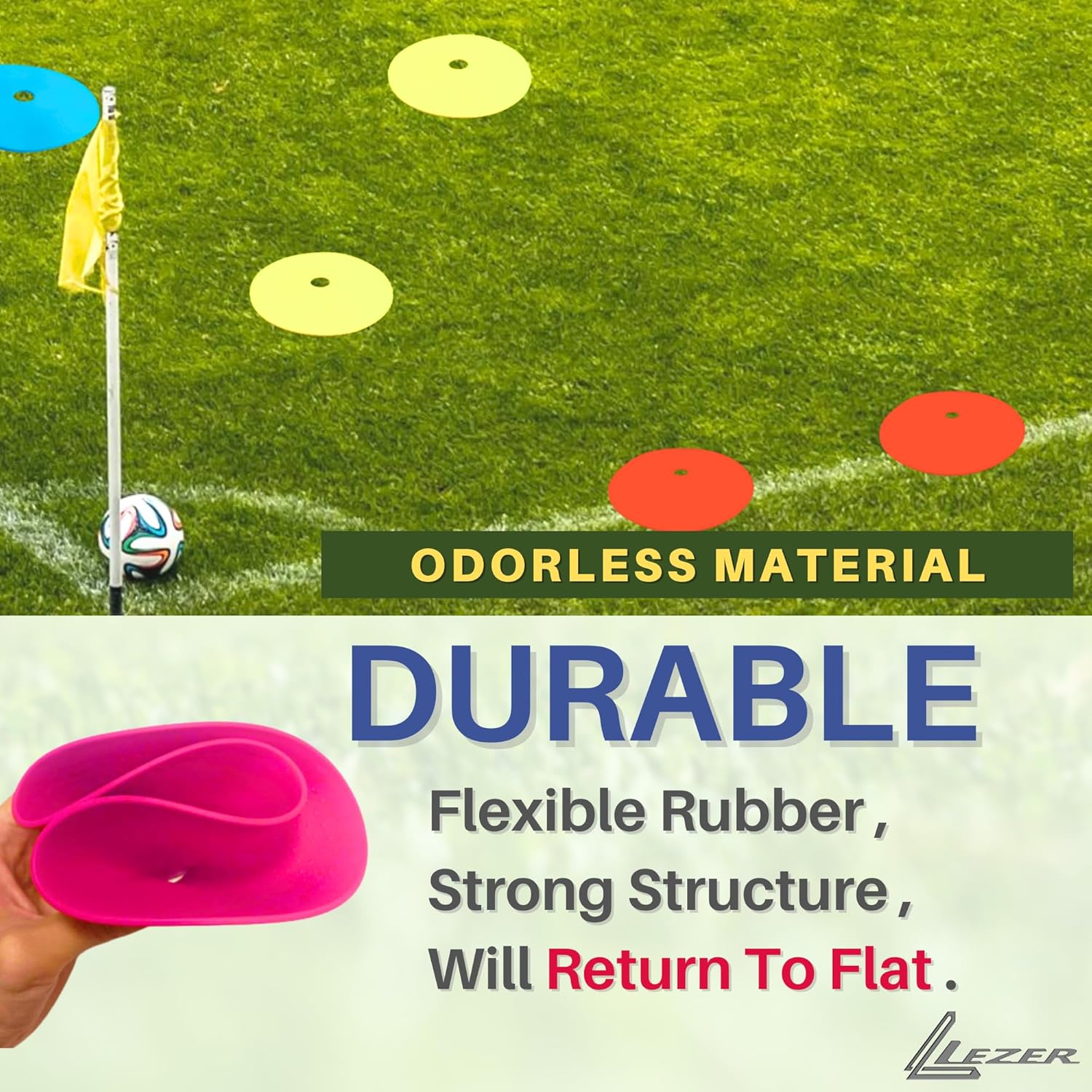 LEZER 6 Inch 8 Inch Flat Cones, Spot Markers, Soccer Cones, Field Court Markers, Sit Spots, Flat Discs, Soccer Training Equipment, Agility Practice, Football, Made in Taiwan