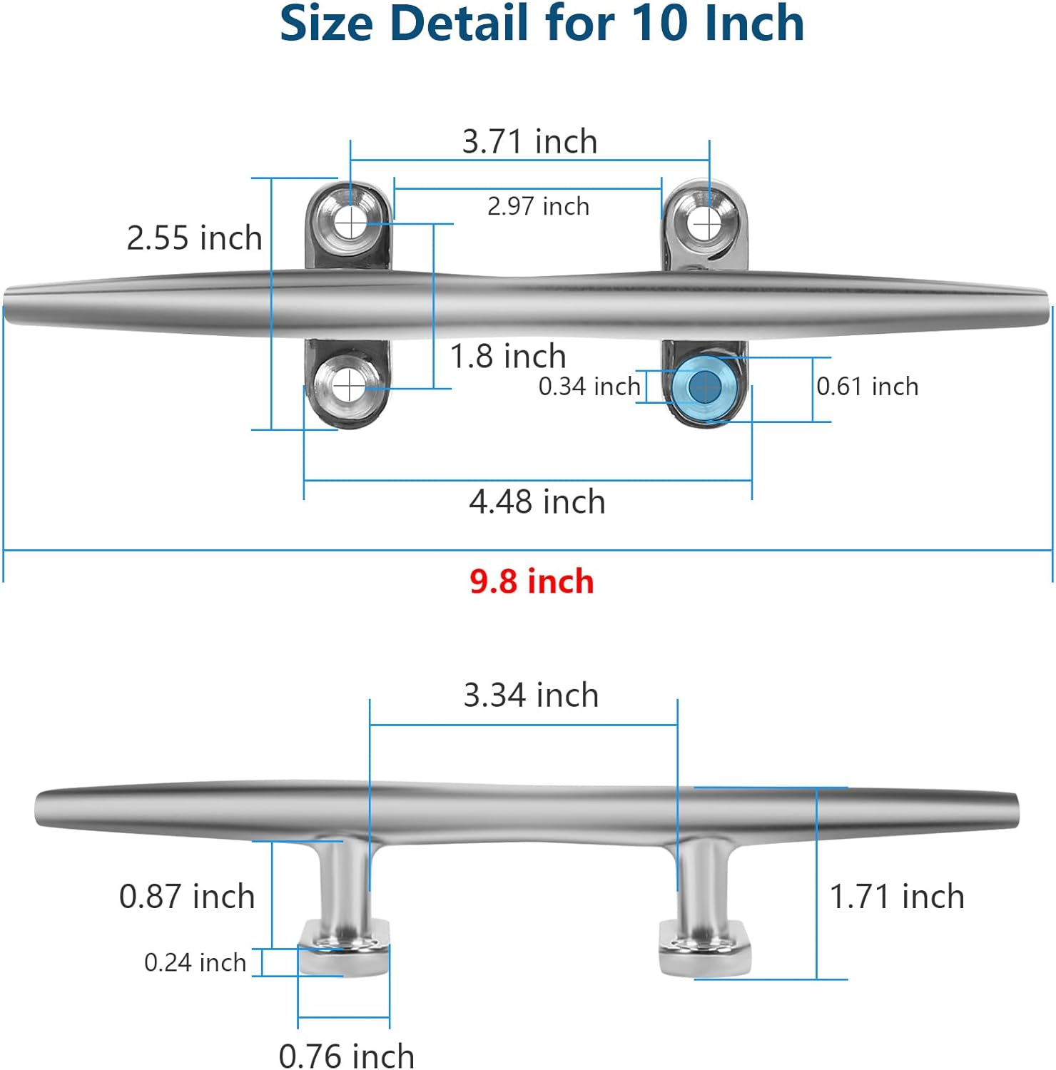 - 【WIDELY USED】: This dock cleats 10 inch will add a definite nautical vibe, place it anywhere to revolutionize your space, not only a great match for marine use docks, decks, piers, kayaks, jet skis, beaches, Garden, swimming pool, etc., you can freely install them in any DIY home nautical decoration, such as cabinet pulls, marine cleat hooks for towels, rustic coat hangers, curtain ties, nautical coat hooks, etc., bring the ocean style into Indoors, make your home stand out