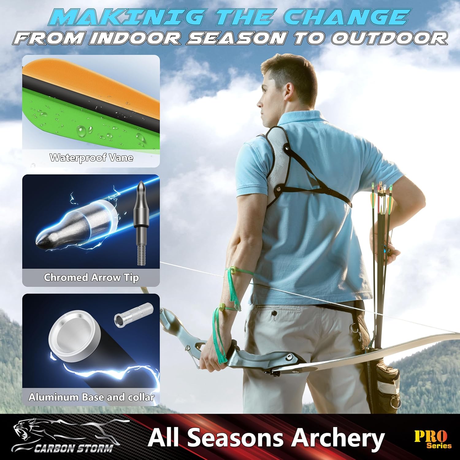 • Premium Carbon Fiber 12 pcs arrows set. Shaft Length: 30in, Full Length: 31.5in. Fit for most compound bow & recurve bow which draw weight 40-60 LBS.