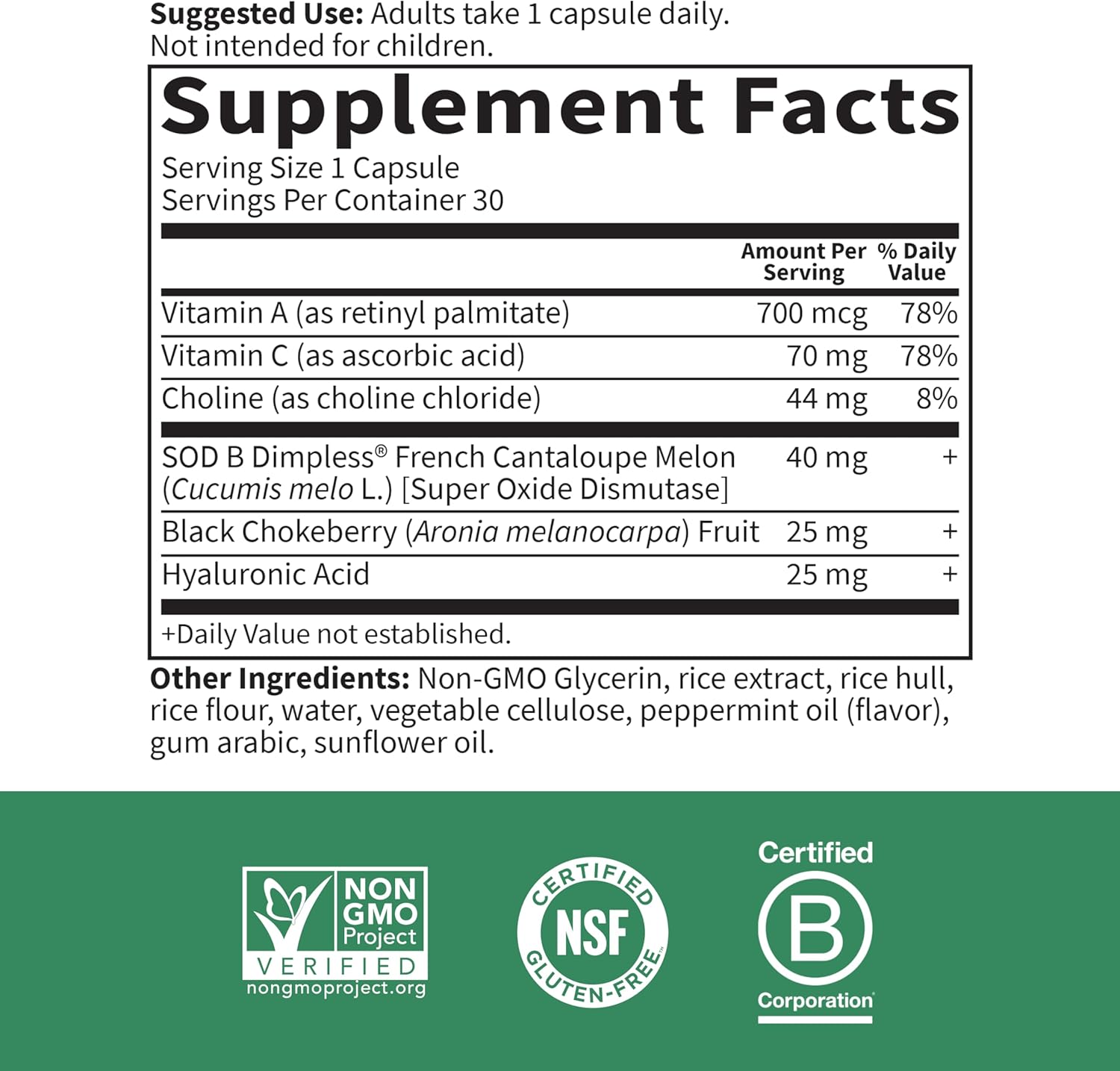 - COMPREHENSIVE BEAUTY SUPPLELENT FOR SKIN: Enriched with Vitamins A and C, Hyaluronic Acid, and Black Chokeberry extract, this supplement works synergistically to hydrate, nourish, and rejuvenate your skin from the inside out*