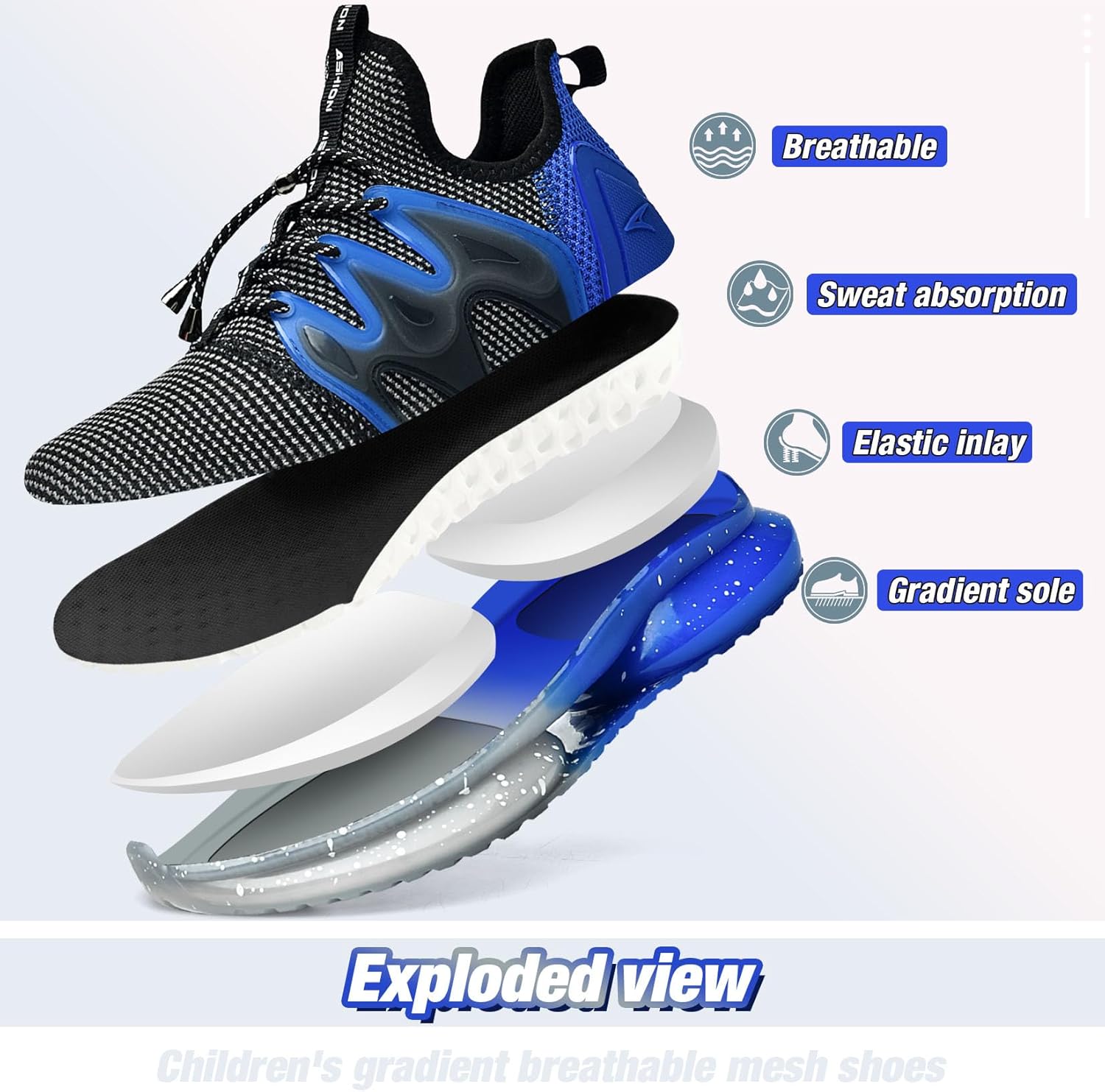 - The shoes for boys have the designed fly knit upper and skin-friendly lining, they can make kids feet more comfortable and keep their feet dry all day.
