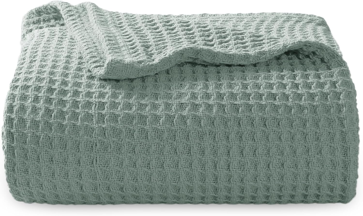 Bedsure 100% Cotton Blanket Twin XL Size for College Dorm - Breathable and Soft, Waffle Weave Twin Blanket for Summer, Dorm Room Essentials, Sage Green, 66x90 inches