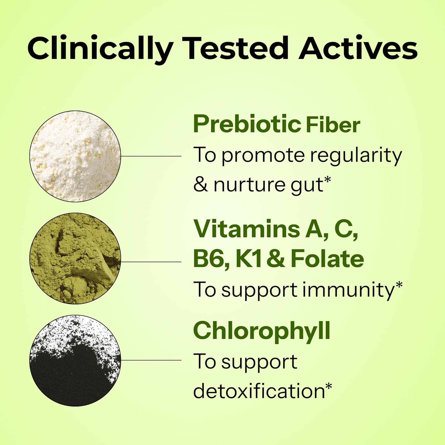 - DAILY GREEN BOOST MADE EASY - Get your daily green boost without the hassle of juicing. Simply take 3 gummies at any time, with or without food. One bottle contains 60 Vegan Gummies, perfect for a month's supply.*