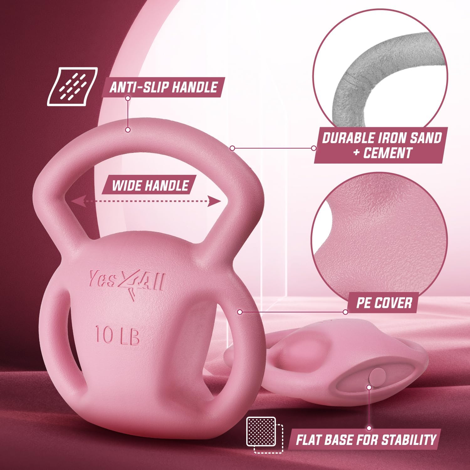 Yes4All Kettlebell 10&15lb Weight with Wide Multigrip Handle for Dumbbell Weights Exercises, Full Body Workout Equipment