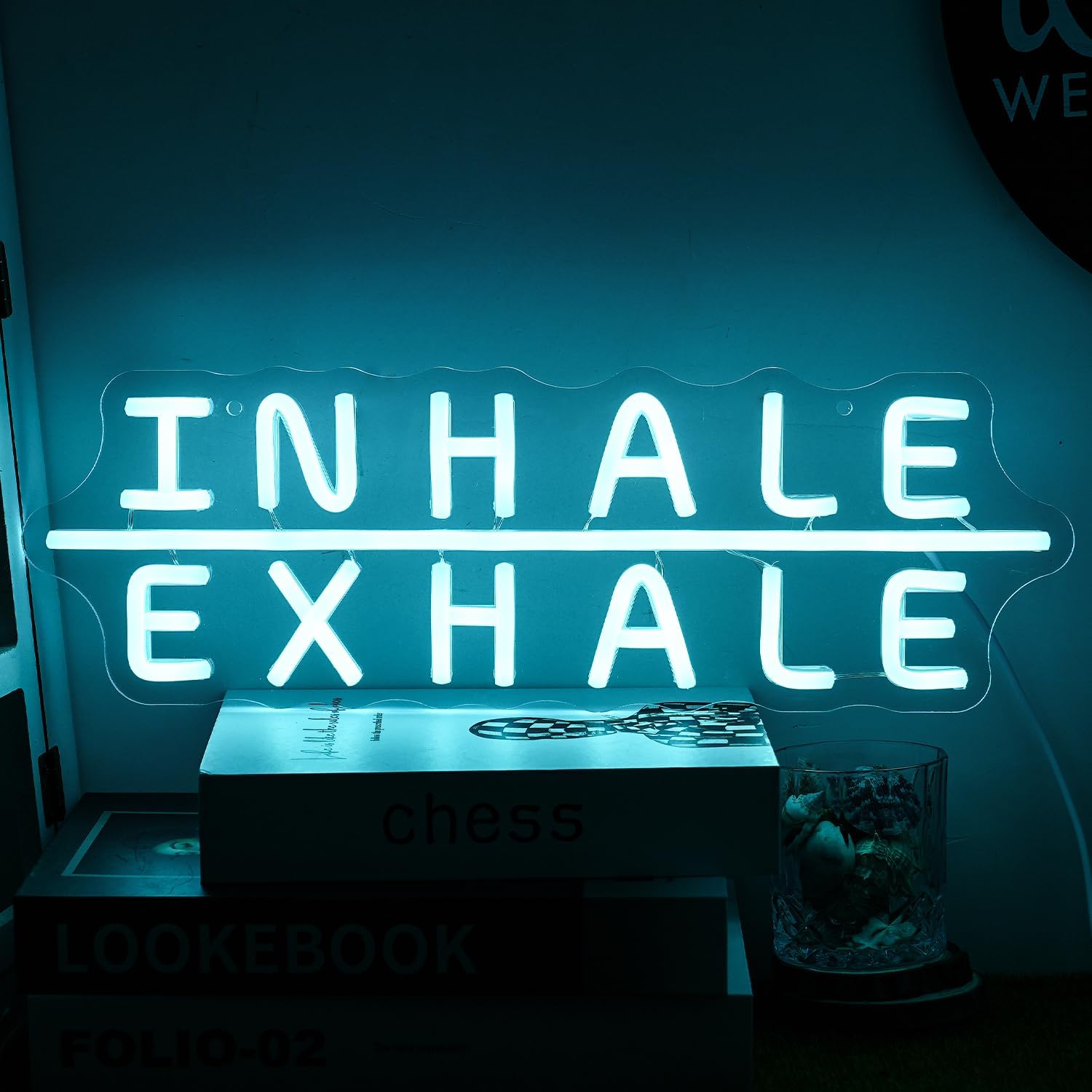 - 🧘【Suitable size】"Inhale Exhale"led sign size approx 16.7”x5.5”(42.5*14cm)led neon signs cord length is 78",fitness neon bed room decor use safe USB(can connect to PC,chargers)to light up your blue led sign.