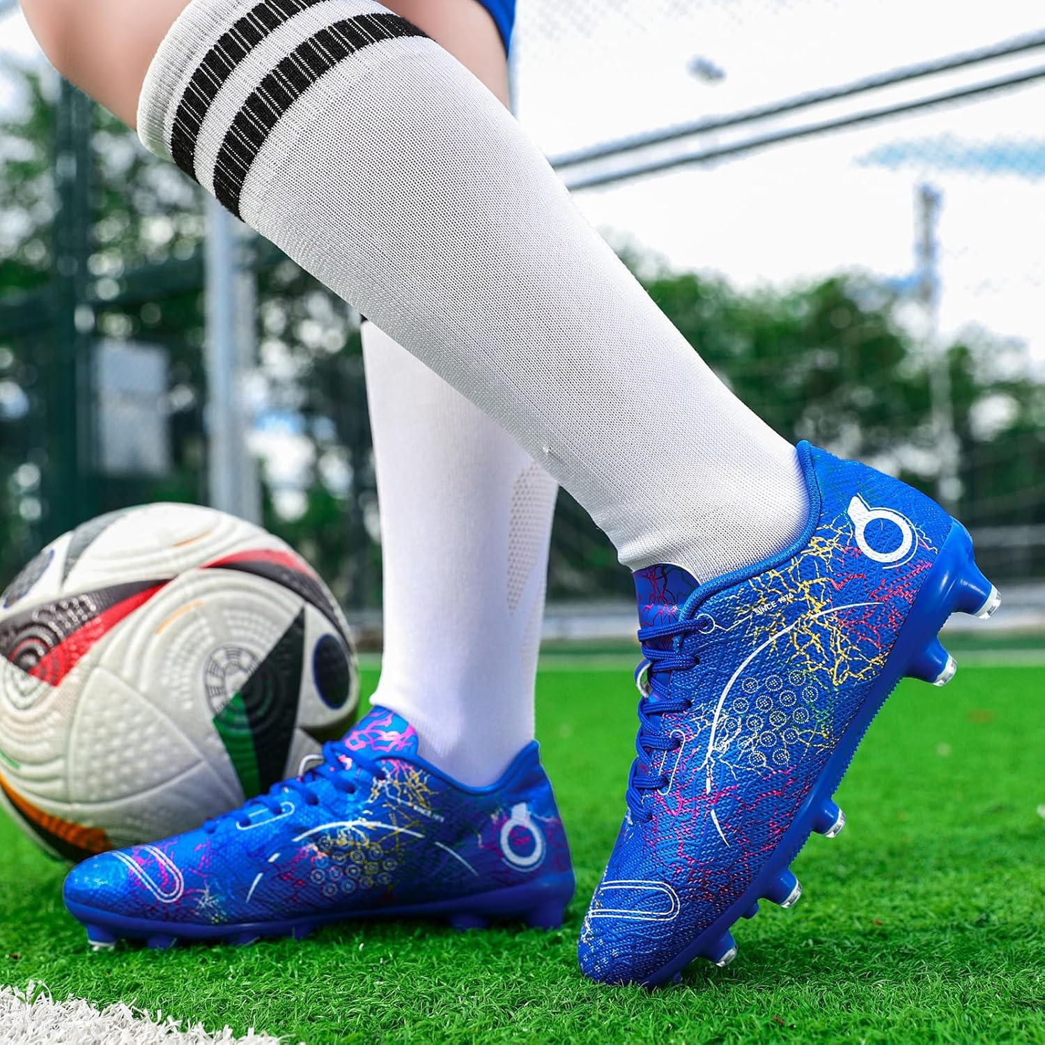 Boys' Soccer Shoes Kids Firm Ground Soccer Cleats Girls Athletic Sneakers Outdoor Turf Football Shoes for Little/Big Kid