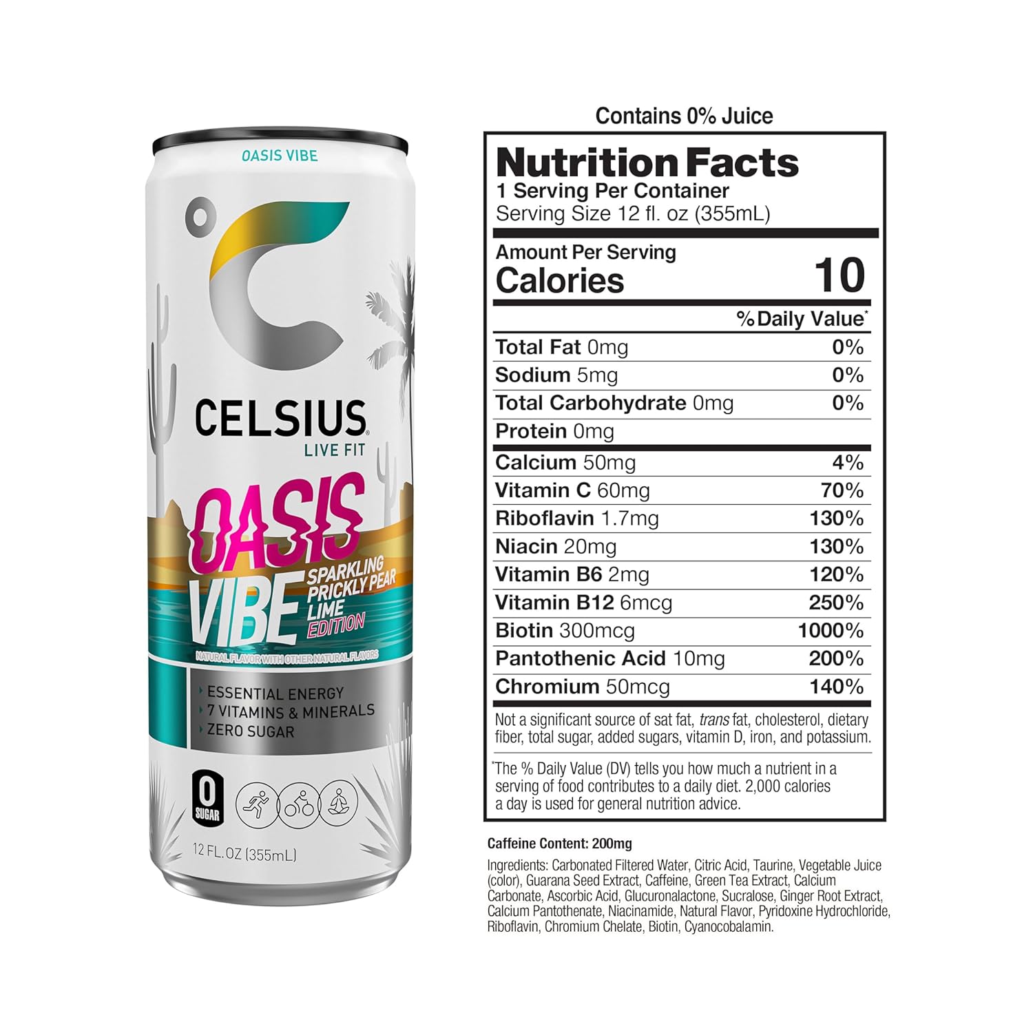 CELSIUS OASIS VIBE Sparkling Prickly Pear Lime, Sugar Free Energy Drink, 12 Fl Oz (Pack of 12)