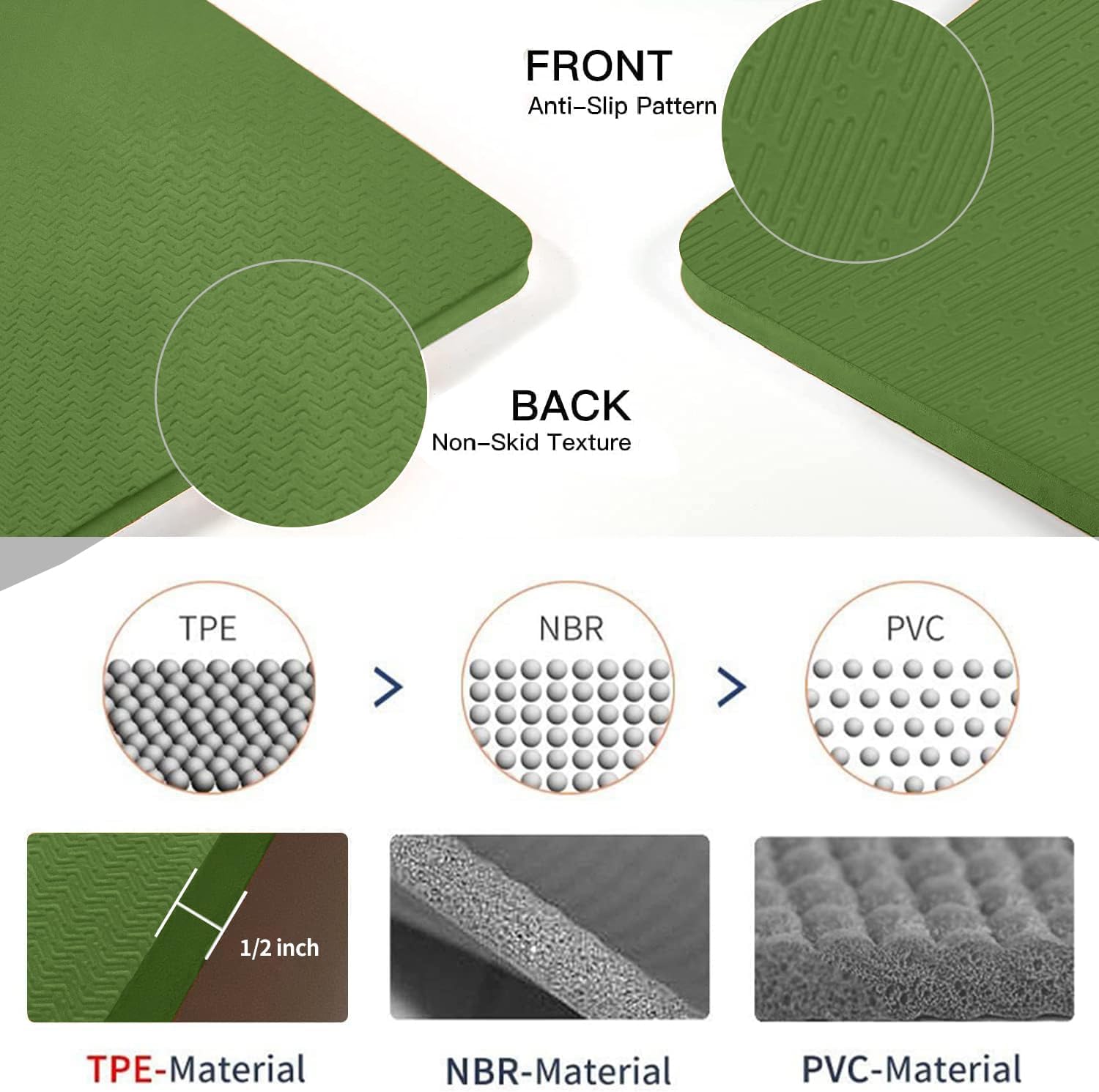 - Extra Large and Extra Thick: Our yoga mat measures 72"x 48" and boasts a thickness of 1/2 inch, offering ample room and superior comfort.Mat with a thickness of 1/2 inch can relief from joint pain during floor.