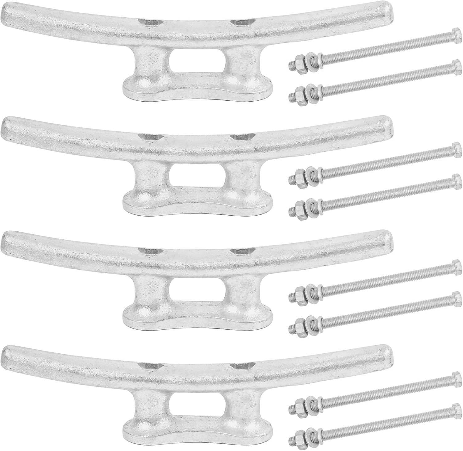 - 【Corrosion Resistance】These Rough Cast Hot Dipped galvanized boat cleats are highly strong and offer excellent protection against rust. The package includes 4 dock boat cleats along with 8 bolts and nuts, making them suitable for both indoor and outdoor use. The galvanized coating on the metal dock cleats provides a strong defense against corrosion. The zinc layer acts as a protective barrier, effectively preventing the formation of rust and corrosion on the underlying metal