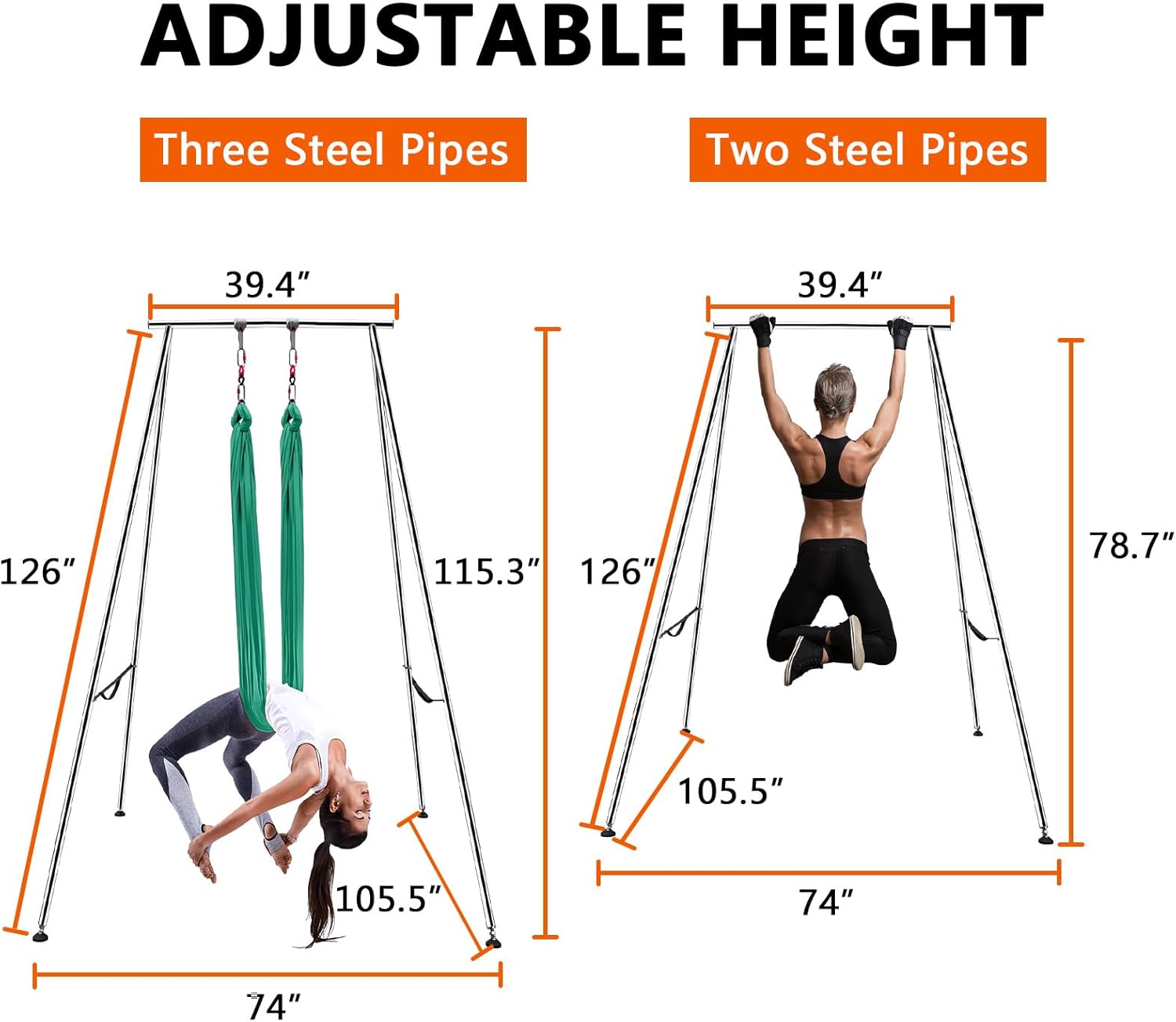TECSPEC 9.6 FT/115.3 Inch Adjustable Height Aerial Yoga Frame & Hammock, Professional Swing Stand with 18 FT/33FT Aerial Silk, 550lbs Max Capacity