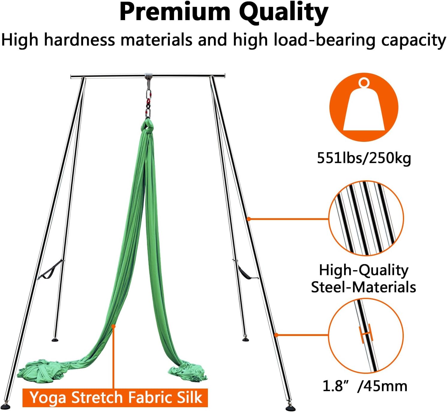 TECSPEC 9.6 FT/115.3 Inch Adjustable Height Aerial Yoga Frame & Hammock, Professional Swing Stand with 18 FT/33FT Aerial Silk, 550lbs Max Capacity