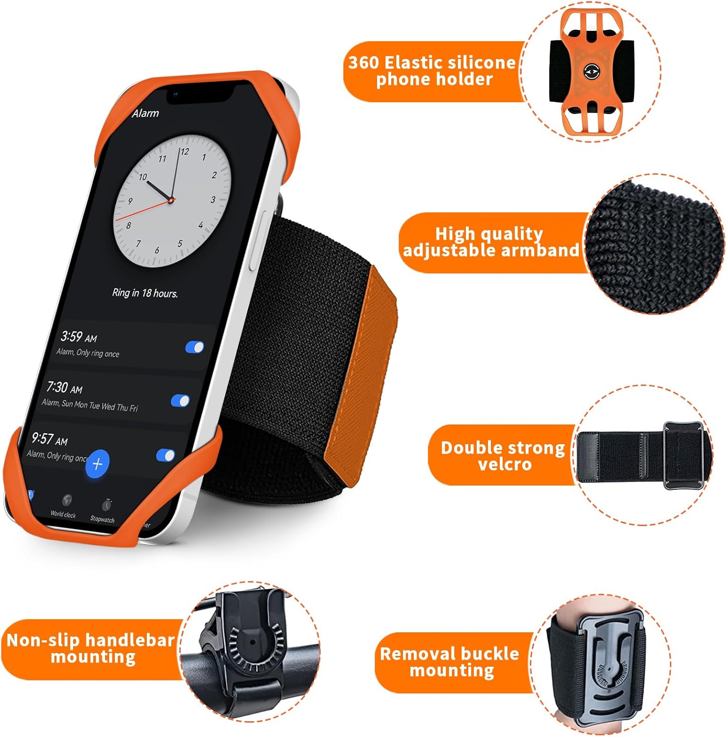 3in1 Phone Holder for Running,Arm Band/Wrist Holder/Bike Mount,Phone Armbands 360° Rotation & Detachable Fit All 4.5-7" Cellphone for iPhone 16/15/Pro/ProMax/14/13/12/mini/Pro Max/XS/XR