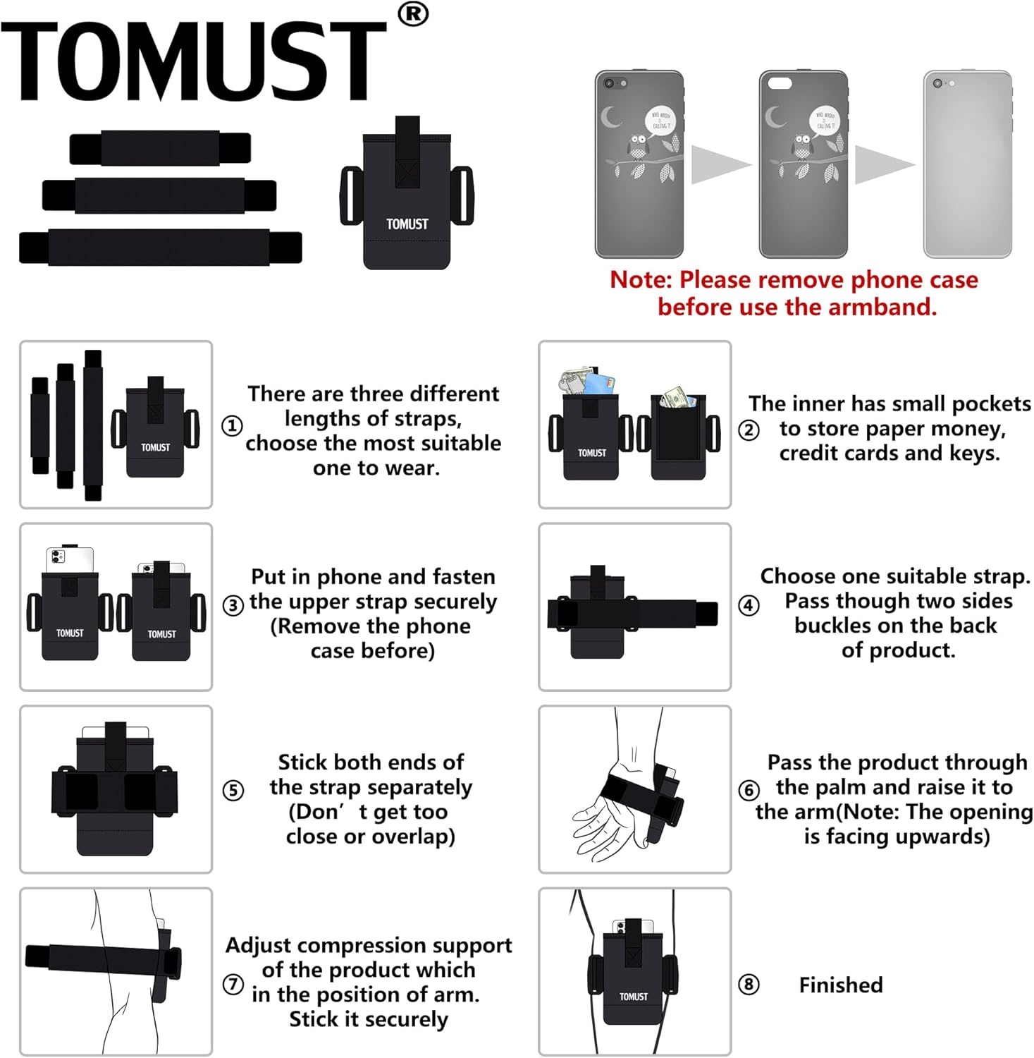 - Larger Capacity:TOMUST phone armband has larger capacity. The inside pocket is convenient to put in or take out items. The elastic material is also suitable for holding any size of phone. TOMUST phone holder is a must for outdoor activities