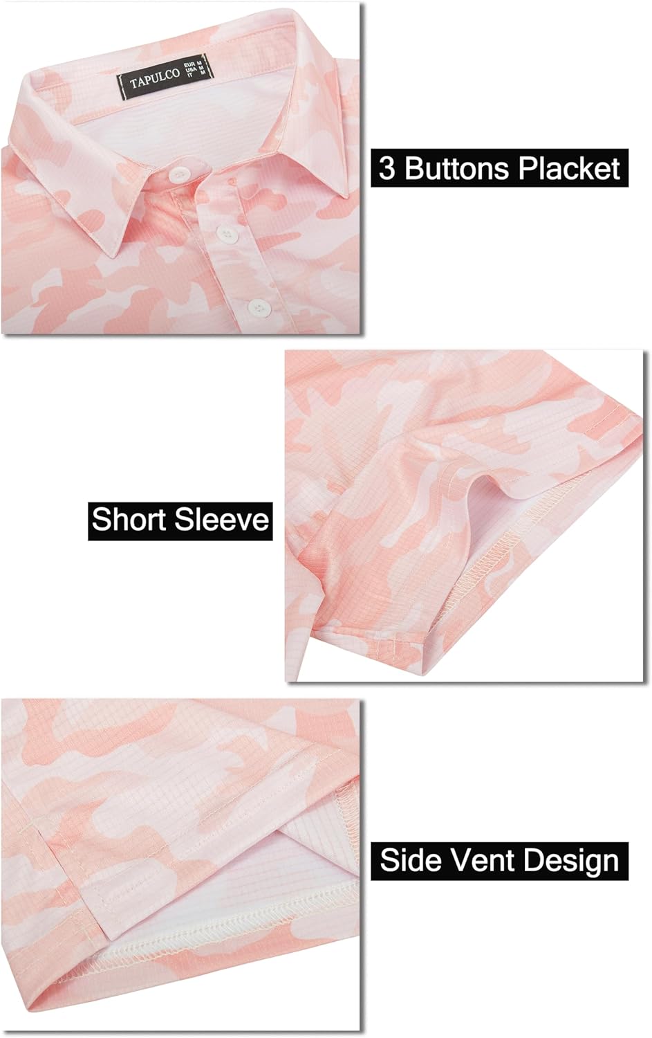 TAPULCO Mens Quick Dry Polo Shirts Camouflage Pattern Performance Athletic Lightweight Breathable Casual Golf Tshirts