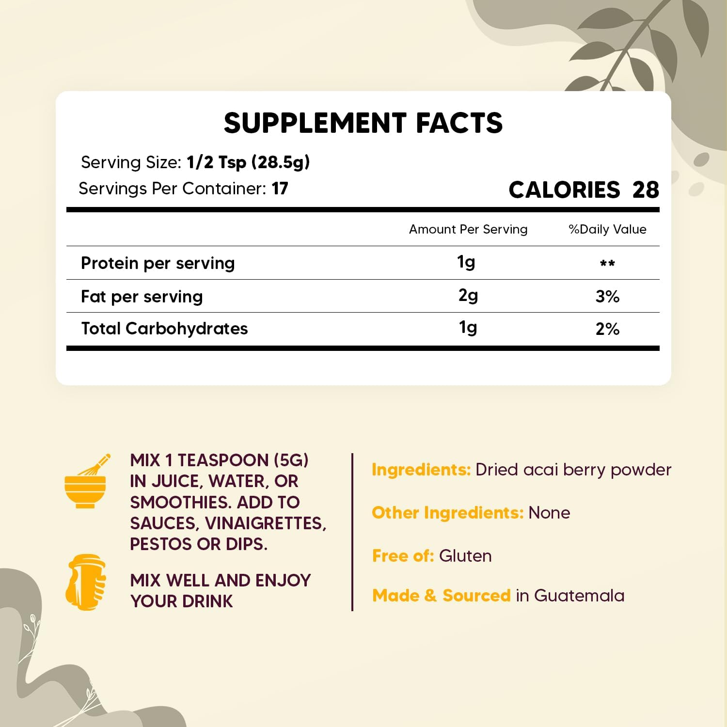 Acai Berry Powder, Freeze Dried Acai Powder - Organic Acai Powder for Smoothie Bowls, High in Nutrient-Dense Antioxidants, Made from Brazilian Acai Trees - Vegan, Gluten Free