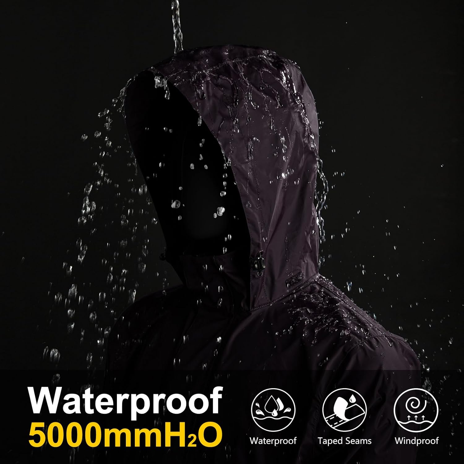 • 【Material】Rain jacket for men waterproof is made of ripstop, high density polyester waterproof shell fabric; Interior is laminated TPU membrane. Seams are 100% fully sealed and welded with TPU membrane, keep you all-day dry in overcast and rainy.