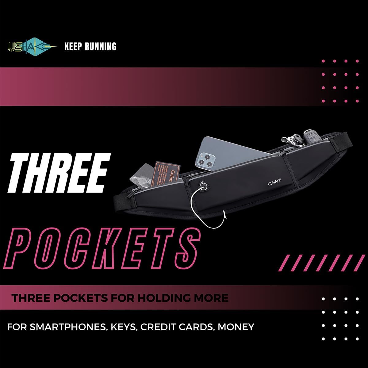 - 【HOLD MORE BELONGINGS】: Most of smartphones, passport, keys, credit cards, money, energy gels can be put in this waist pouch belt. Ear bud hole is for pleasant music in running. It can also be used as fanny pack greatly for all forms of exercise including walking, running, hiking, riding bikes, working out at the gym and more. Great value for triathlons, marathons