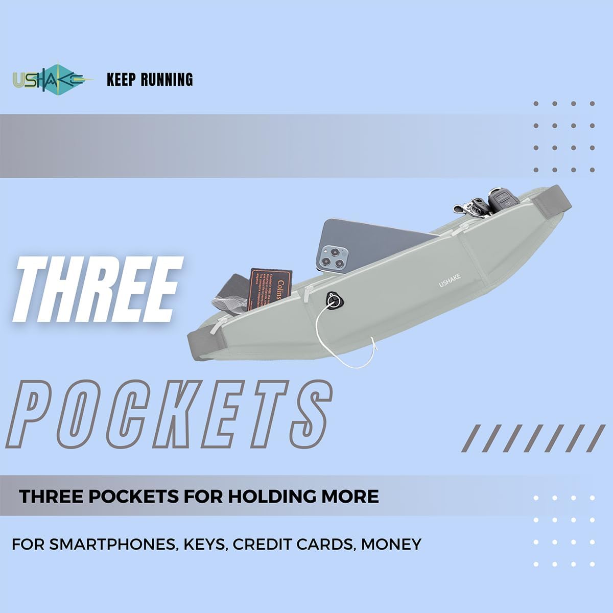 USHAKE Slim Running Belt, Workout Fanny Pack for Men Women,Exercise Waist Pack for Apple iPhone Holder, Runner Belt for Running Walking Cycling Camping Gym Light Grey