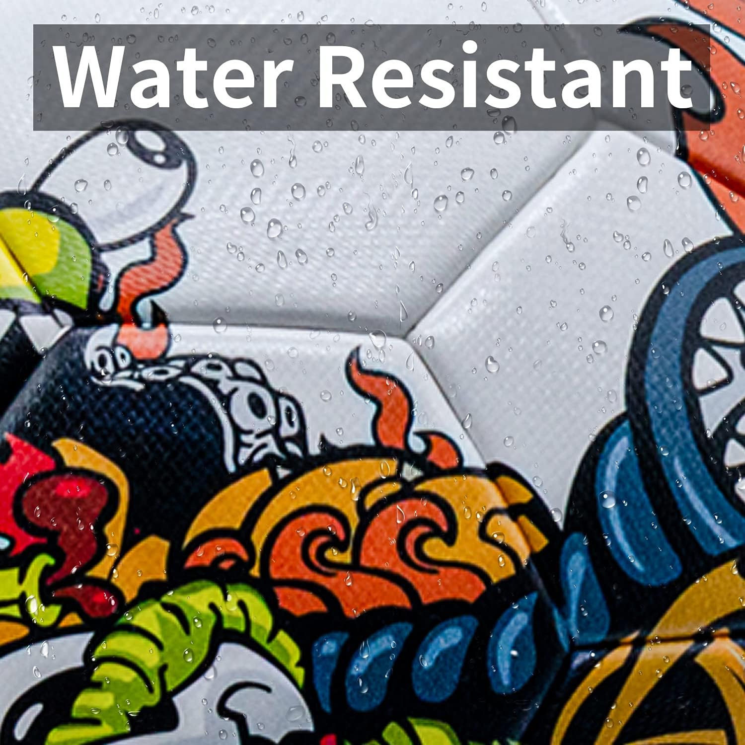 - ⚽Water Resistant Soccer Ball: Special Thermal-Bonding technology make the size 5 soccer balls more durable and no thread broken, water will not seepage inside the body. And will provide optimal surface coverage and handling, rain or shine.